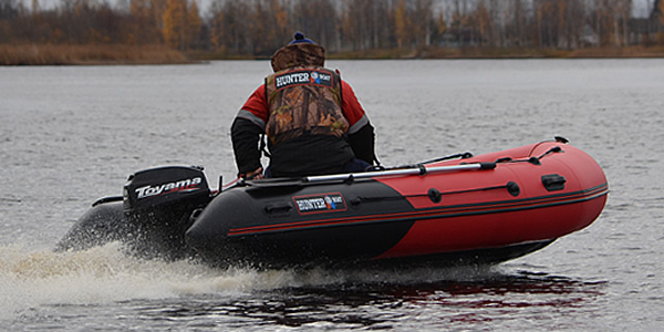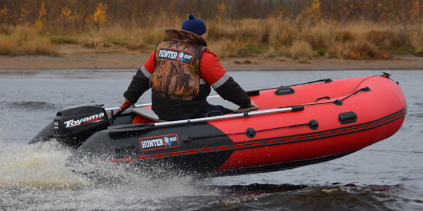 Надувная лодка Хантер 350 ПРО со стационарным вклеенным умеренно-килевым дном низкого давления (НДНД) рассчитана на использование с мотором до 15 л.с. с максимальной загрузкой до 600 кг. Предназначена для рыбалки, охоты и активного отдыха на воде небольшой компанией. Выпускается в двух расцветах - комбинированном красно/черном цвете и комбинированном черно/камуфлированном цвете.