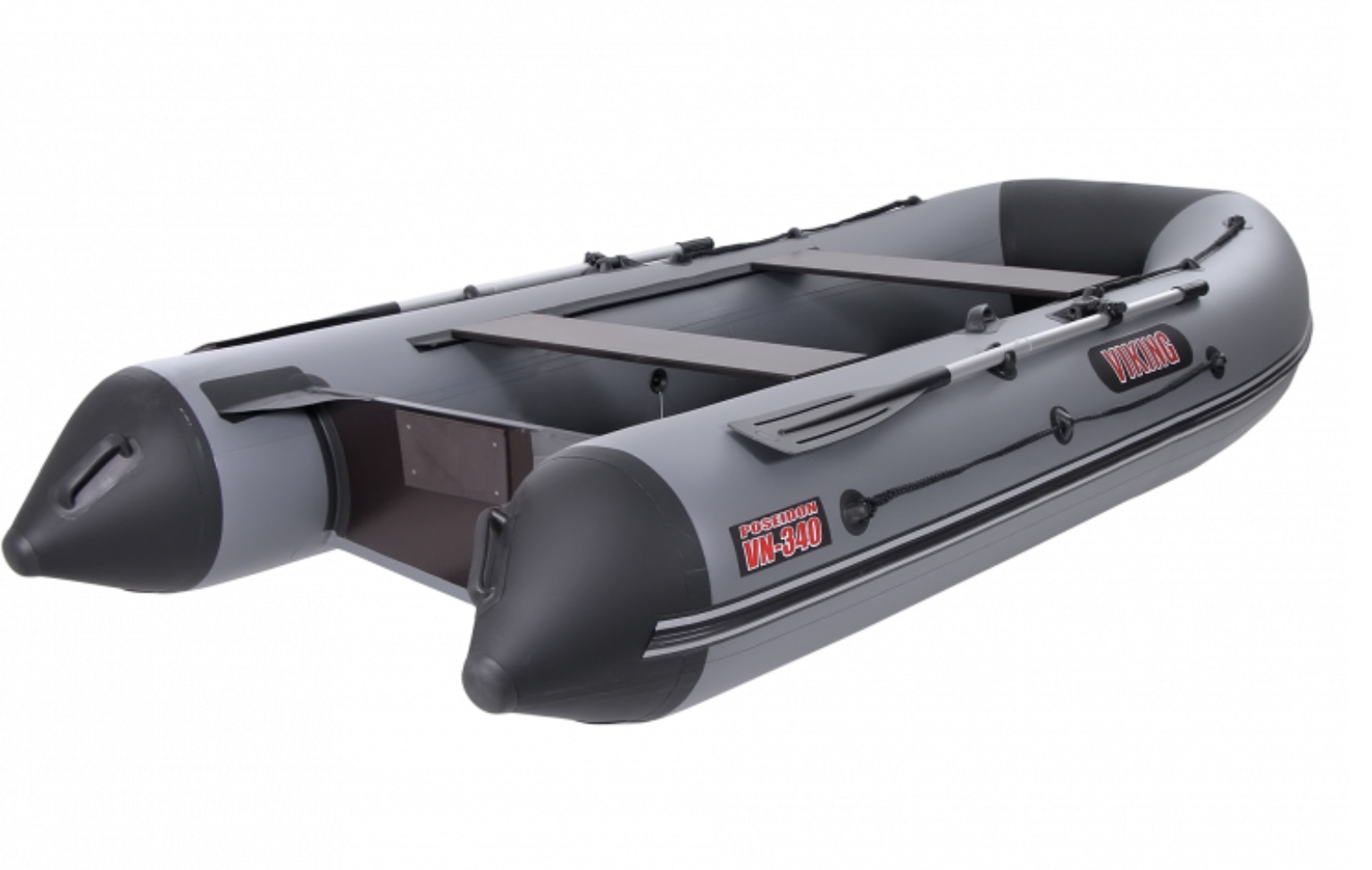 Надувная лодка ПВХ Посейдон Викинг VN-340 H - это моторно-гребная лодка с килем и стационарным вклеенным транцем (возможность установки мотора мощностью до 15 л.с.) класса Лайт от производителя ООО "Посейдон Трейд". Баллон разделен воздухонепроницаемыми перегородками на три независимых отсека таким образом, чтобы в случае выхода из строя одного из отсеков лодка сохраняла положение равновесия. На лодке используется современная и надежная фурнитура.Лодка ПВХ Викинг изготовлена из высококачественных материалов и воздухонепроницаемых тканей с покрытием ПВХ. Эти материалы не подвержены гниению и обладают высокой износоустойчивостью.
