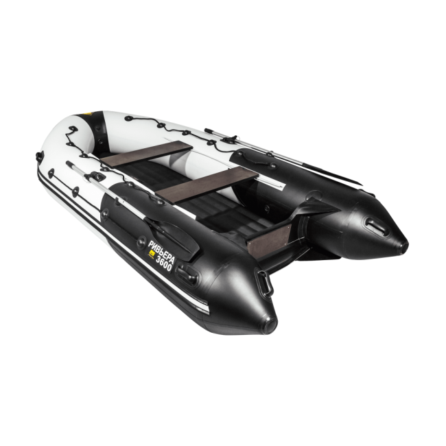 Характеристики товара: Лодка ПВХ Ривьера 3600 НДНД "Комби" светло-серый/черный