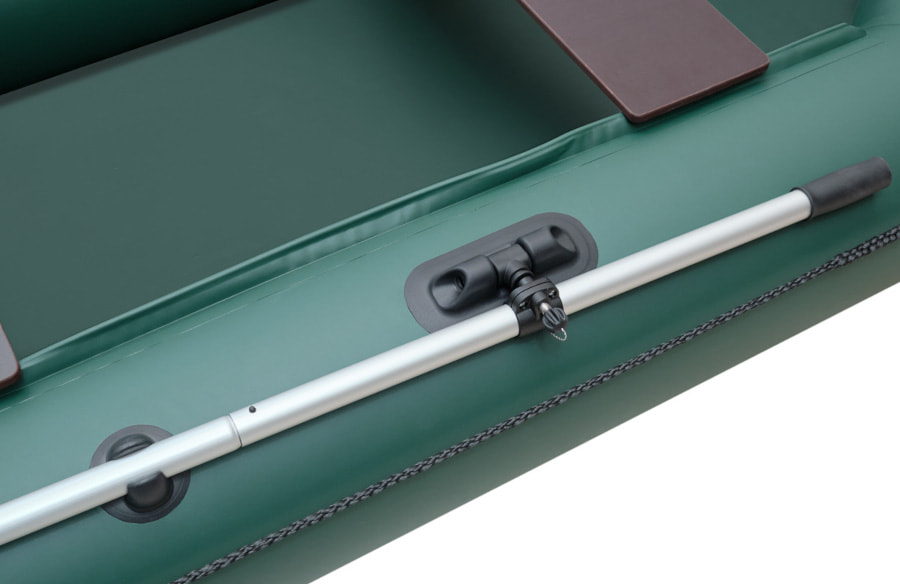 Лодка оснащена леерными поясами, каждый из которых растянут по внешней стороне борта лодки между двух шайб. Данная модель комплектуется разборными веслами с пластиковой фурнитурой и поворотными уключинами.