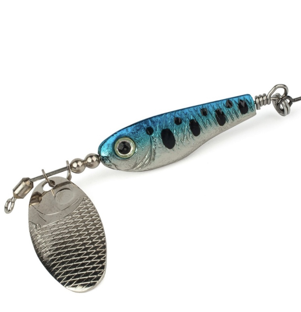 вертушки Niakis предназначены для форелевой рыбалки на ручьях и малых реках. Потому эксперты Smith наделили блесну легким чуть вытянутым овальным лепестком. Он начинает вращаться с первой потяжки и не сбивается на струе. Рифленая поверхность создает множество бликов. Приманка выглядит очень реалистично, благодаря дизайну сердечника. Он копирует маленькую рыбку с живыми глазками и рельефными деталями. Асимметричная конструкция смещает центр тяжести, чтобы стабилизировать блесну и улучшить ее кастинговые показатели. Представители Smith подчеркивают, что Niakis имеют минимальный риск перекручивания лески. Продуманное крепление, встроенный вертлюжок, выверенные пропорции - все служит для этой цели. Компактные вертушки оборудованы одинарником с бородкой для надежного удержания клюнувшей рыбы. С такой приманкой можно поймать и капризную форель, и осторожного голавля или жереха, а также язя, окуня и мелкую щучку.