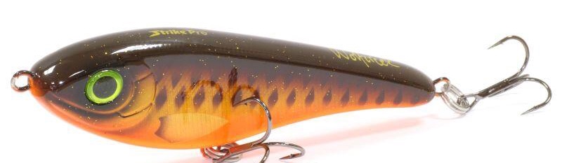 Зубастая щука трофейных размеров может подниматься за легкой добычей ближе к поверхности, либо держаться на глубине. Поэтому джерк Buster Jerk версии Sinking погружается на 0,5 - 4 м. Он особенно хорош на неактивной хищнице, так как на паузе тонет, продолжая немного покачиваться. Этим он напоминает умирающую рыбку, которая является желанной добычей даже для сытой, заторможенной щуки. Приманка при длине 15 см и массе 75 гр довольно послушна и отзывается на любые рывки. Чем они интенсивнее, тем больше Buster Jerk Sinking отклоняется от прямой линии. Соблазнительная игра возможна благодаря конструкции, которую разработали шведские эксперты CWC. Однако выпускается серия под брендом Strike Pro. Для того, чтобы джерк лучше привлекал внимание, в корпусе спрятана погремушка. Для слабого освещения предусмотрены светящиеся и флуоресцентные окрасы.