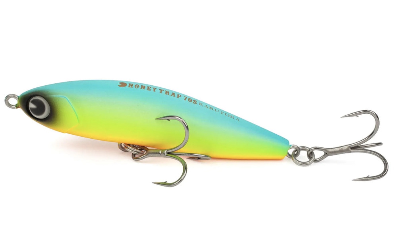 Отрицательная плавучесть не мешает воблеру Ima Honey Trap Karutora 70S быть типичным представителем тов вотеров, провести который можно на глубине до 50 сантиметров. Внешне он чем-то напоминает всем известный уокер, однако классическая выемка в передней части отсутствует, поэтому приманка движется не по поверхности, а с незначительным заглублением. Собственных активных колебаний у Honey Trap Karutora 70S нет. Несмотря на это, stickbait прост в освоении, так как сочетается с незаурядной рывковой проводкой.