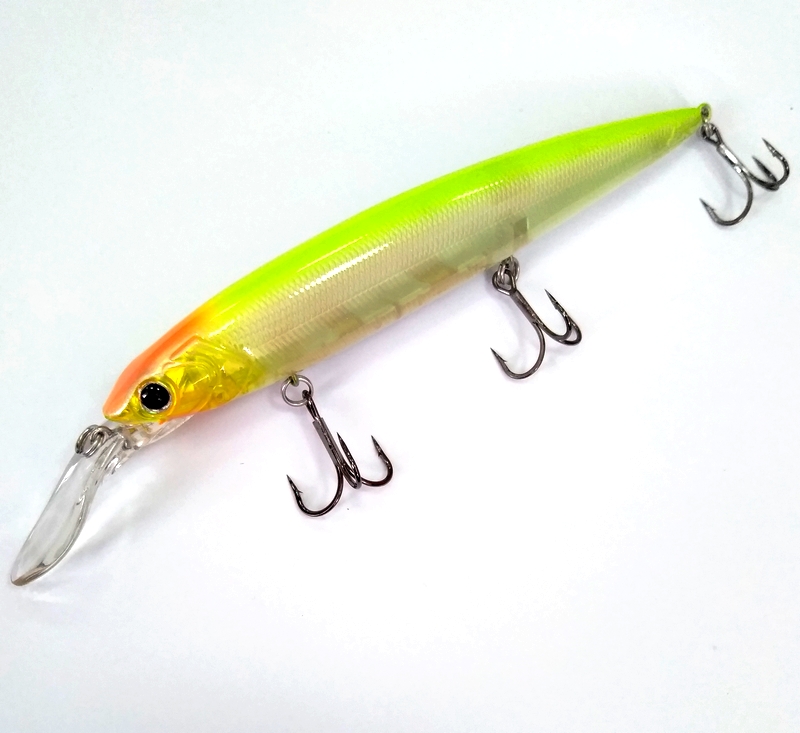 глубоководный воблер-миноу с особой системой балансировки и прекрасными полётными характеристиками. На паузах занимает положение немного вниз головой, имитируя положение живой рыбы. Уникальная форма лопасти с одной стороны позволяет четко держать заявленный горизонт, а с другой не влияет на дальность заброса.