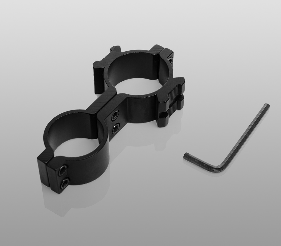 Крепление GM-11 с широким отверстием диаметром 30 мм позволяет закрепить фонарь на оптических приборах. Второе отверстие подходит для большинства фонарей с распространенным диаметром тела 25,4 мм. В конструкции крепления присутствуют 2 планки Picatinny. Благодаря такому креплению, вы сможете оснастить свое оружие всеми необходимыми аксессуарами и устройствами одновременно.