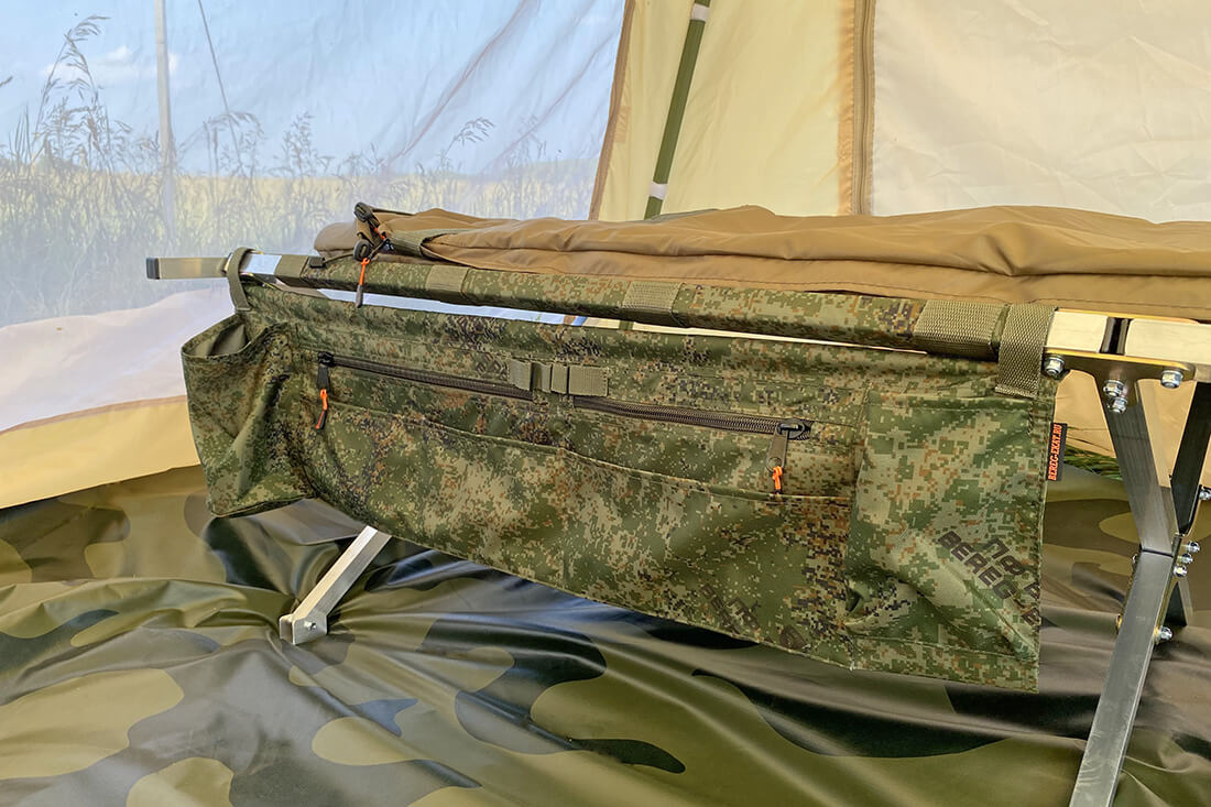 Задумайтесь заранее о хранении вещей, включая мелочи, в поездке. Ответственный производитель палаток снабдит их всем для решения данного вопроса: органайзерами, карманами, стеками-полками. Но иногда не хватает и этого, а хочется, чтобы все необходимое было под рукой. В таком случае полезным дополнением к походной мебели станет органайзер для раскладушки, который может использоваться участниками поездки для хранения личных вещей.