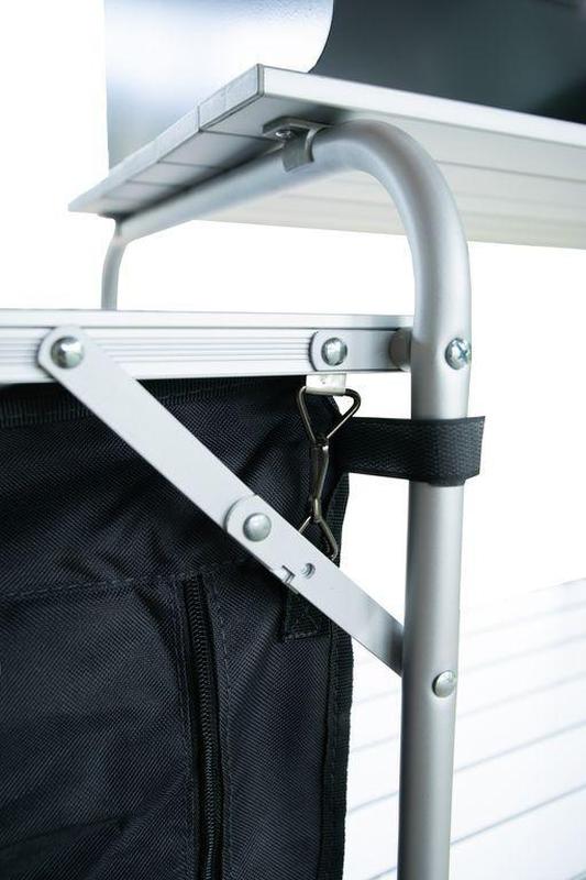 возможность регулировки высоты ножек и складывания кухни в кейс.