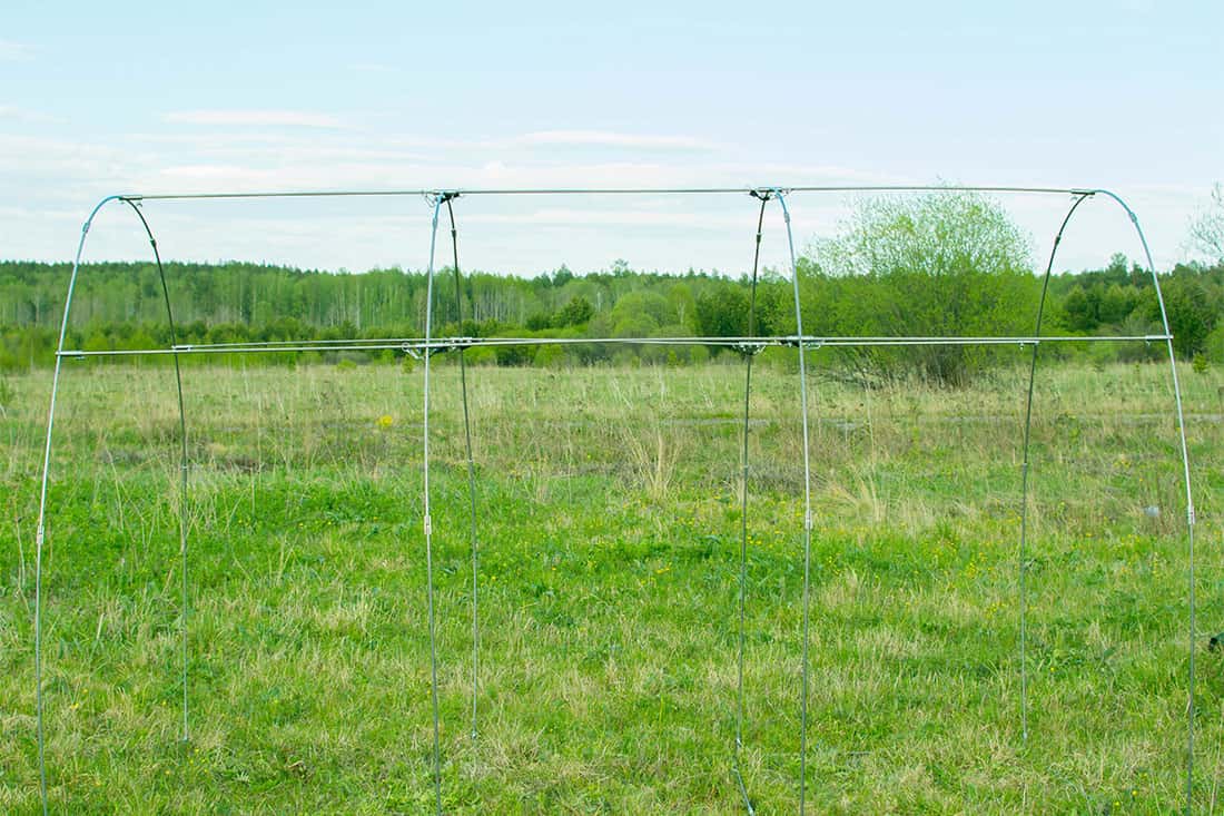 Установите внешний тент на каркас. Закрепите его липами и лентами ПВХ;