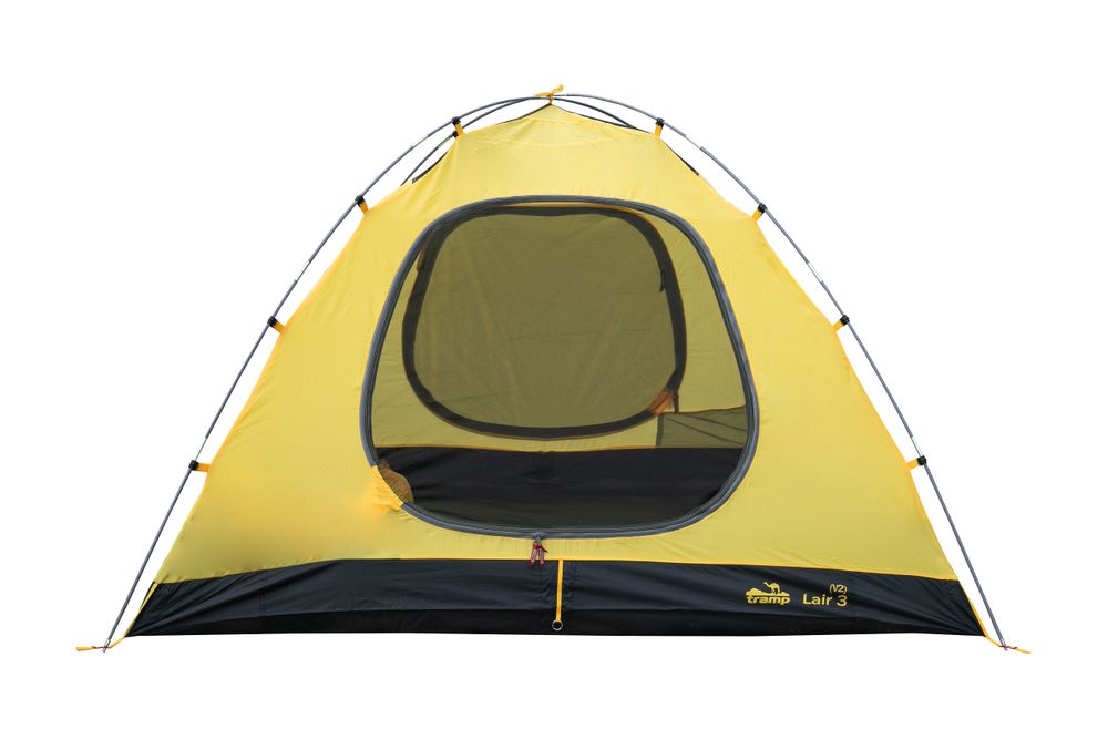 Трехдуговая модель конструкции "полусфера" с просторным тамбуром, двумя входами и снежной юбкой по периметру внешнего тента.