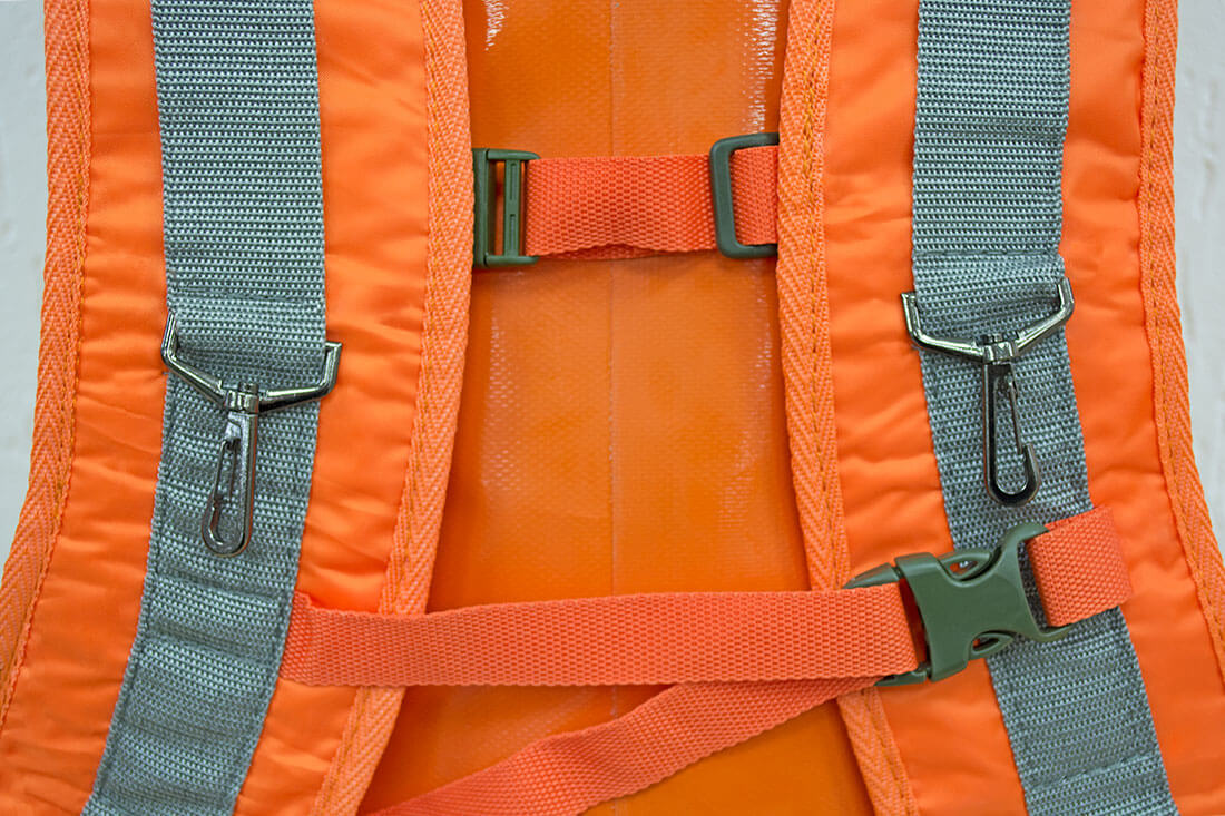 2. Надежные крепления с полукольцами позволяют закрепить рюкзак во время сплава