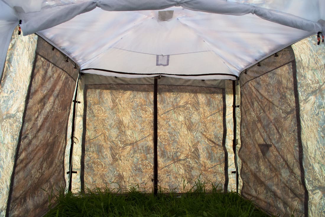 Передняя часть веранды оснащена молниями и может быть поднята, также в ней есть молния, выполняющая роль входа. Веранда состоит из 3 отдельных москитных стенок, которые могут быть пристегнуты раздельно и монолитной конструкцией. Между собой они скрепляются молнией.