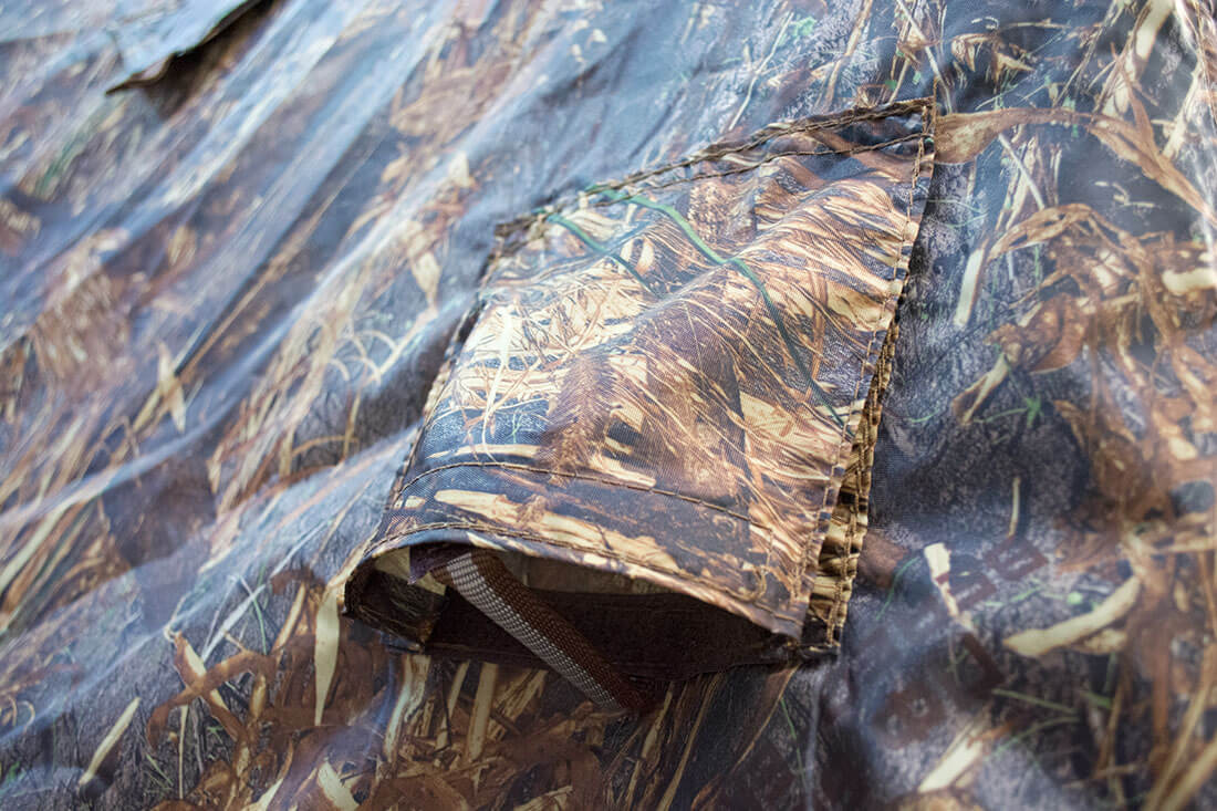В нижней части палатки находится защитная юбка с петлями для крепления кольев. Оттяжные петли Берег УП-5 оснащены кармашками и выполнены со светоотражающими элементами.