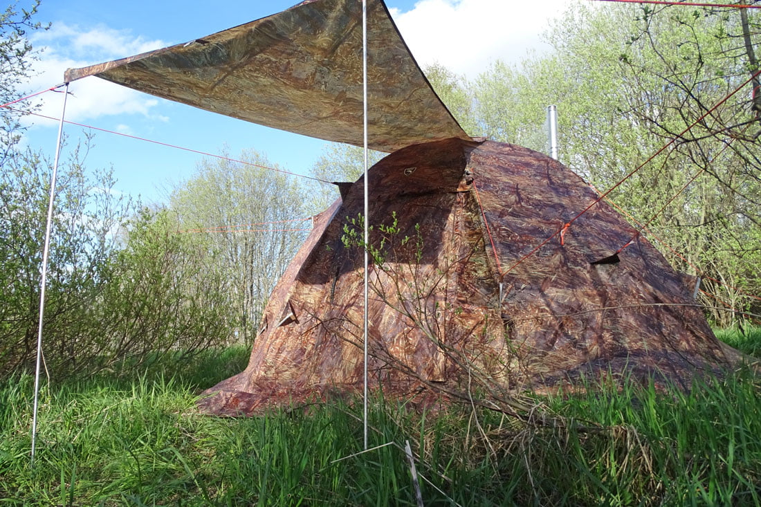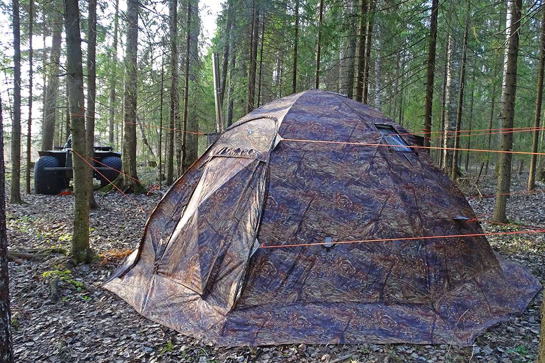 - 8 опорных дуг обеспечивают устойчивость при установке на открытой местности (в степи или на зимней рыбалке).