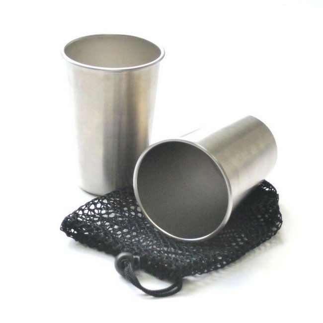 Стаканы вставляются друг в друга, упаковываются в сетчатый мешок.