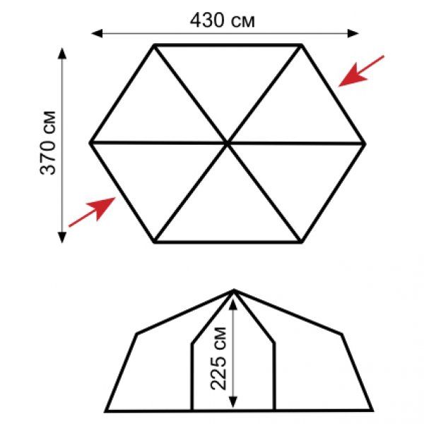 Если вам в походе необходимо где-то разместить столовую кухню или кают-компанию для сбора обитателей туристического лагеря, данная модель – идеальный вариант.