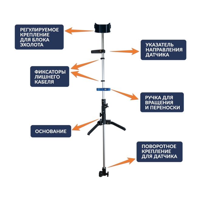 - надежное и морозостойкое крепление блока эхолота с регулируемым углом наклона;
