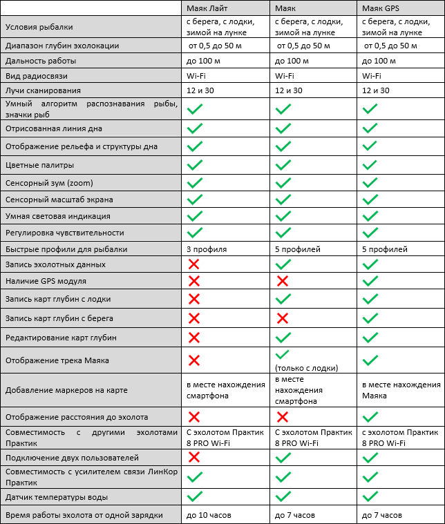 Отличительные особенности эхолота Практик 8 Маяк Лайт: