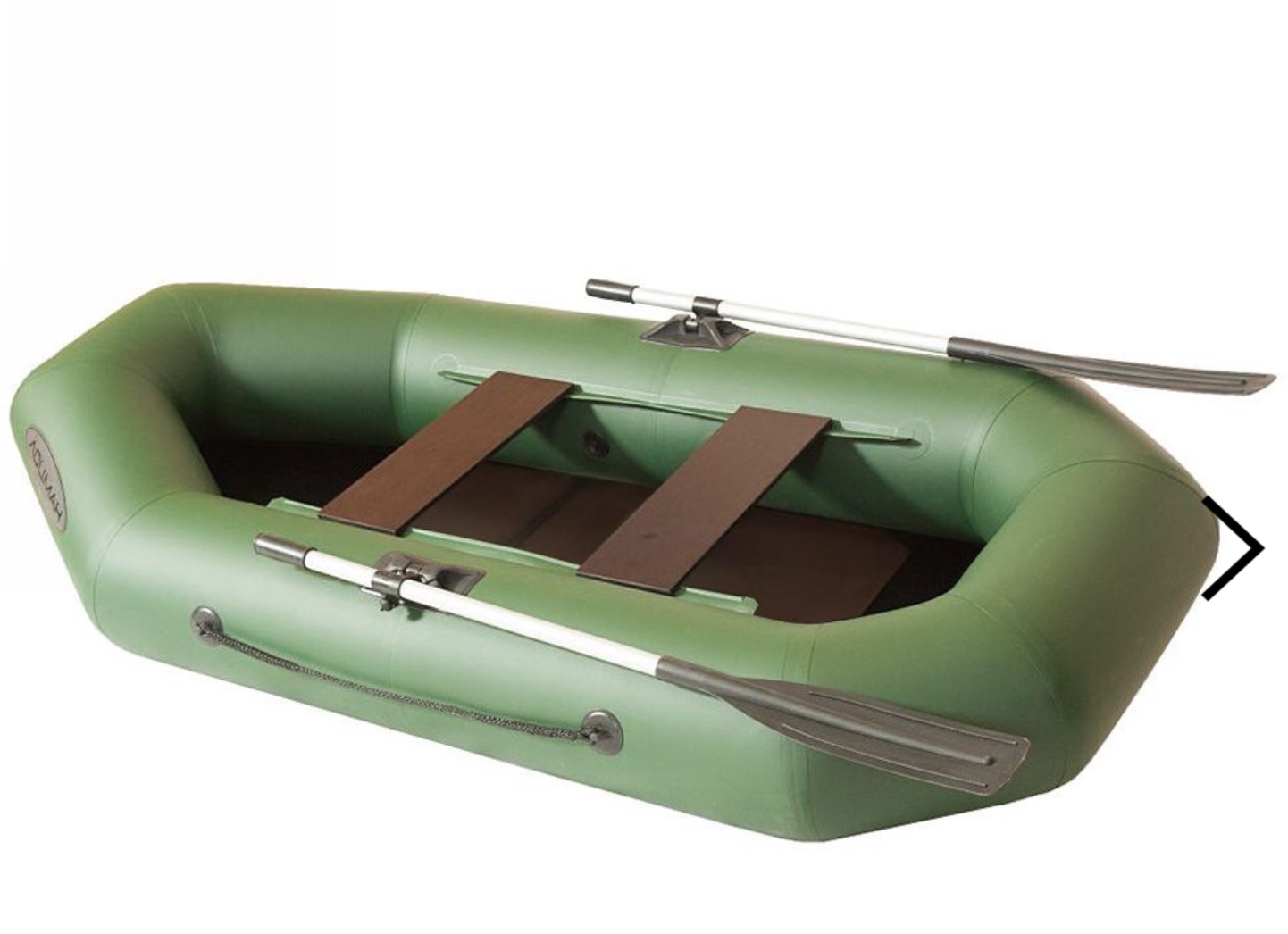 Вёсла выполнены из анодированных алюминиевых труб и снабжены передвигающимися хомутами для регулирования положения весла по длине относительно уключины. Благодаря этому создаются дополнительные удобства гребцу. Съёмная лопасть весла выполнена из полипропилена. Уключина изготовлена из нержавеющей стали.