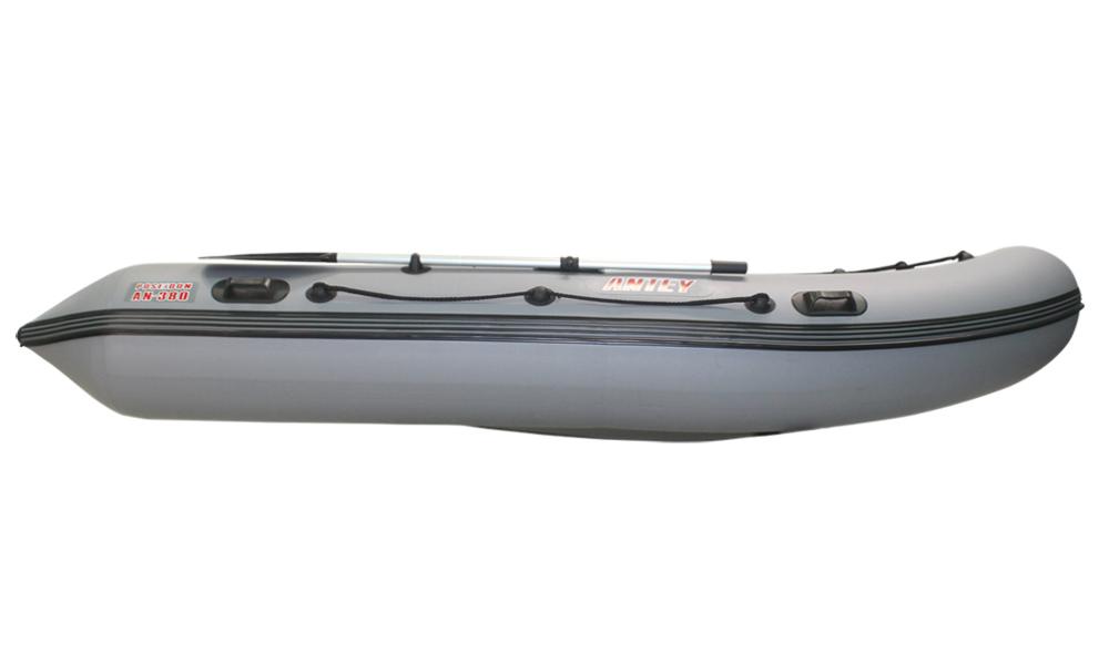 Надувная лодка Антей-380, популярная у любителей и профессионалов, получила новое с увеличенной килеватостью днище, причем не только в миделе, но и на транце. Новое днище обладает более совершенным гидродинамическим качеством, увеличивает комфорт хода по волне, скоростные и ходовые характеристики. При изготовлении лодок данной серии используется ткань VALMEX® плотностью 1000-1100 г/м или аналогичная по качеству и свойствам других мировых производителей.