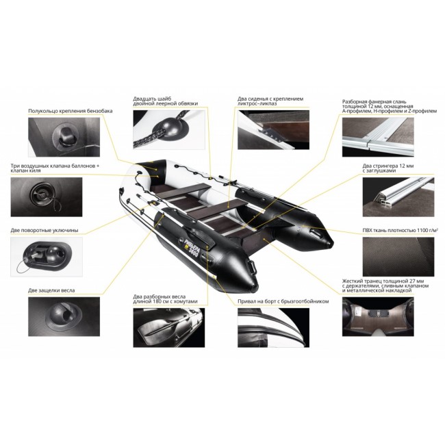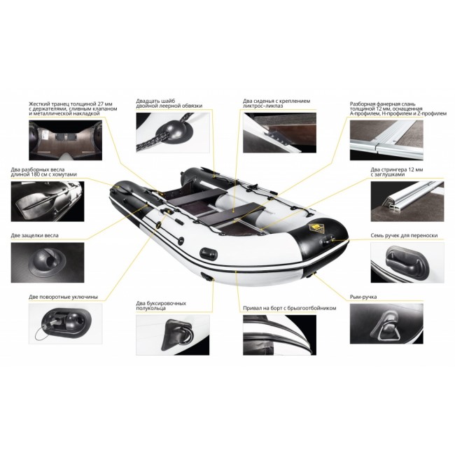 Характеристики товара: Лодка ПВХ Ривьера 4000 НДНД "Комби" светло-серый/черный