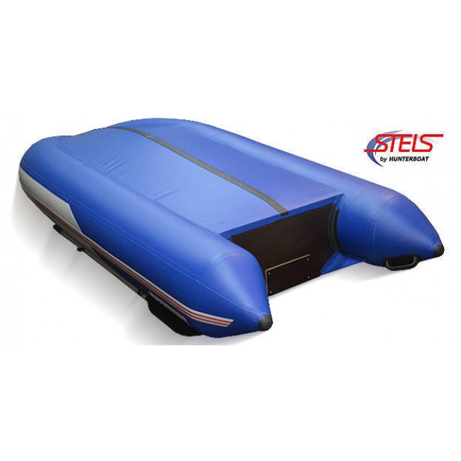 Надувная лодка СТЕЛС 275 изготовлена и ПВХ ткани плотностью 750 гр/м.кв., и представлена в современном дизайне и комбинированном сине/белом цвете.