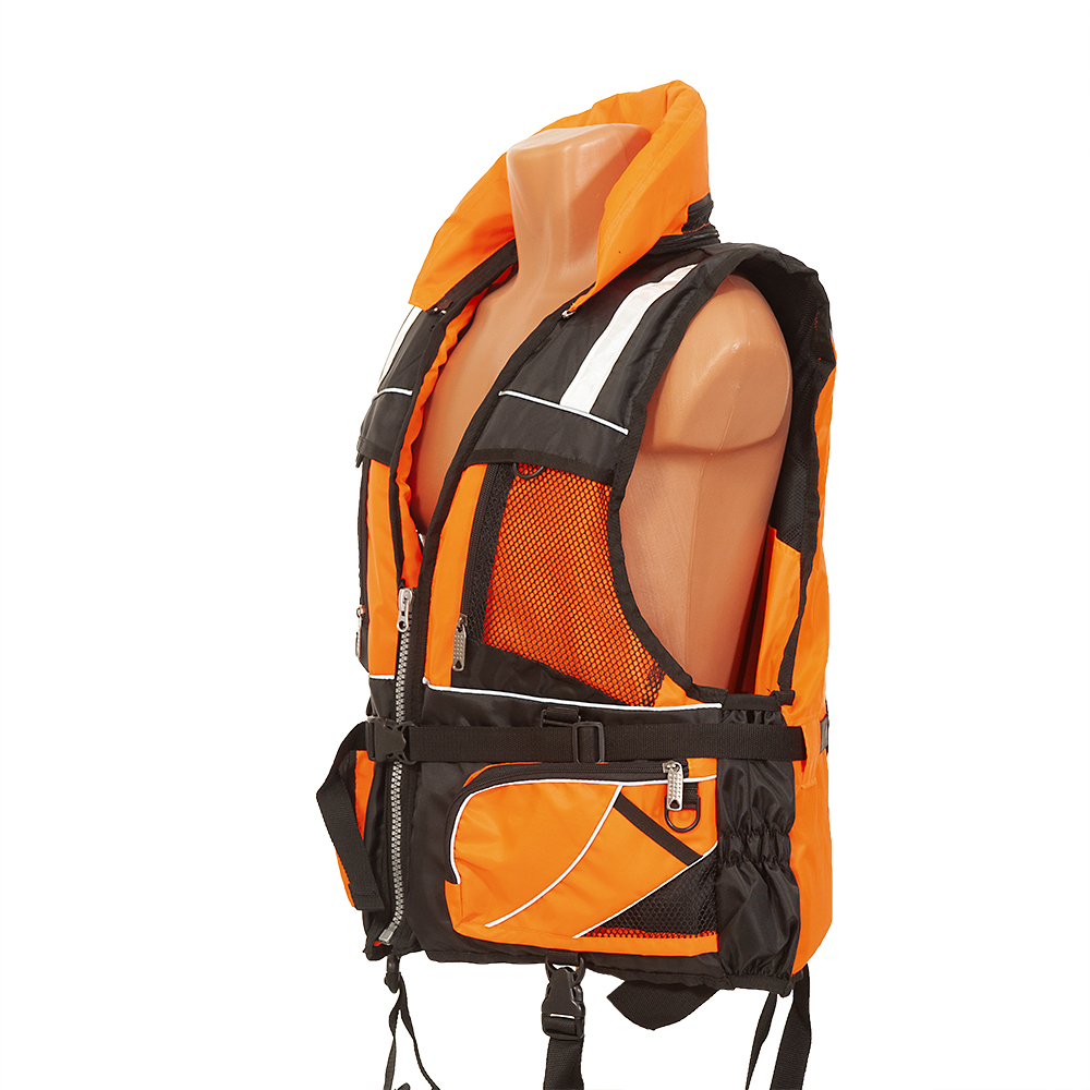 Спасательный жилет с размерным рядом до 115 кг. Жилет премиум-сегмента имеет много красивых и функциональных карманов, а также пластиковых полуколец (для экстрактора, для ключа зажигания и прочих важных предметов), крупную прочную молнию на центральной застежке, небольшой воротник (защищает шею от ветра и холода и увеличивает плавучесть). Паховая стяжка удобно укладывается сзади в сетчатый карман на молнии. На подкладе есть 4 сеточки, позволяющие жилету быстро просыхать, и внутренние стяжки, обеспечивающие лучшую подгонку жилета по размеру. Буквенное обозначение соответствуетразмерам одежды, но подразумевает возможность одевать жилет поверх другойодежды. Из- за особенностей кроя жилет удобно садится как на мужскую так и на женскую фигуру. Товар сертифицирован.