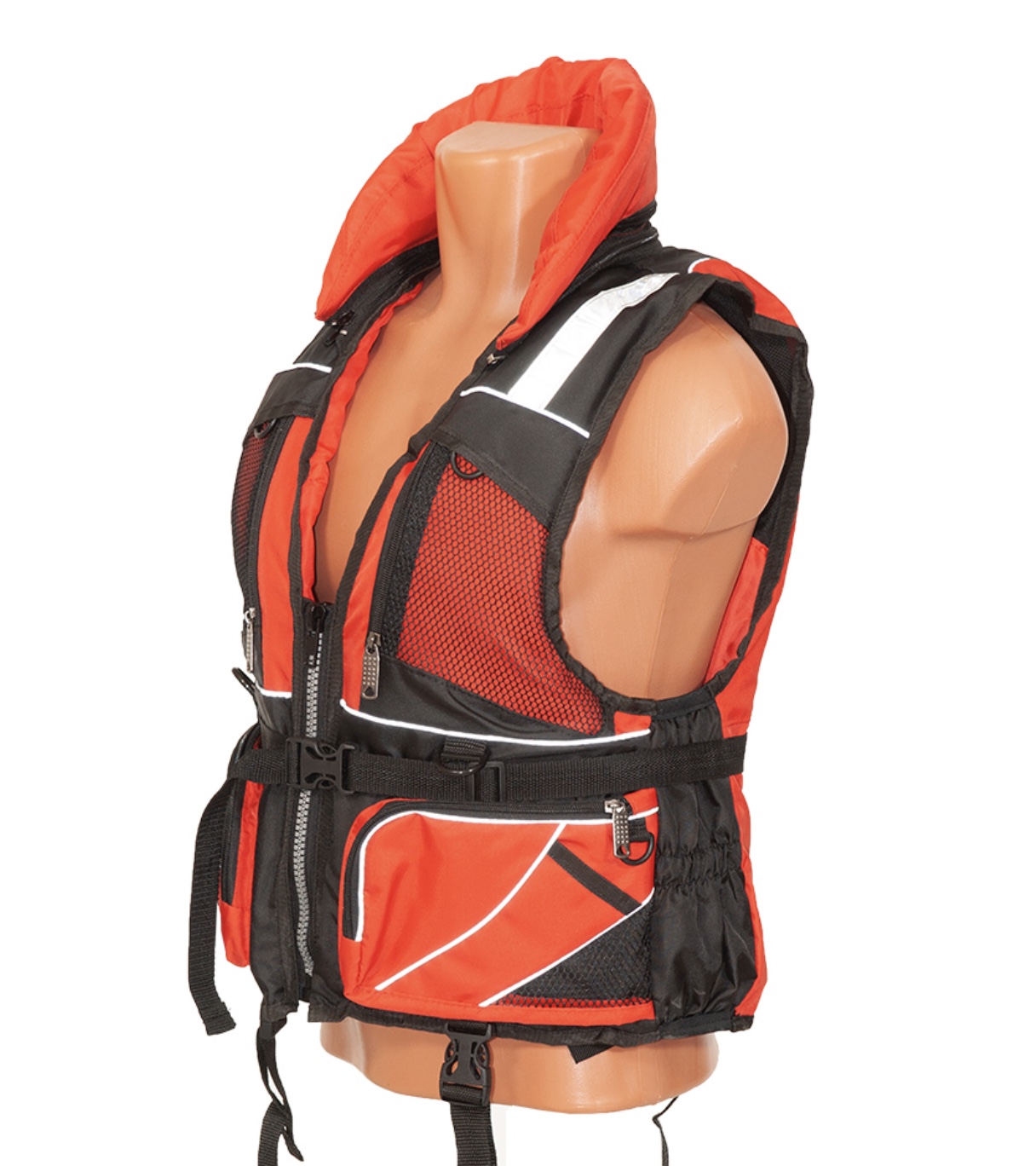 Спасательный жилет с размерным рядом до 115 кг. Жилет премиум-сегмента имеет много красивых и функциональных карманов, а также пластиковых полуколец (для экстрактора, для ключа зажигания и прочих важных предметов), крупную прочную молнию на центральной застежке, небольшой воротник (защищает шею от ветра и холода и увеличивает плавучесть). Паховая стяжка удобно укладывается сзади в сетчатый карман на молнии. На подкладе есть 4 сеточки, позволяющие жилету быстро просыхать, и внутренние стяжки, обеспечивающие лучшую подгонку жилета по размеру. Буквенное обозначение соответствуетразмерам одежды, но подразумевает возможность одевать жилет поверх другойодежды. Из- за особенностей кроя жилет удобно садится как на мужскую так и на женскую фигуру. Товар сертифицирован.
