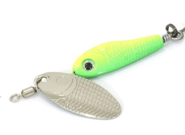вертушки Niakis предназначены для форелевой рыбалки на ручьях и малых реках. Потому эксперты Smith наделили блесну легким чуть вытянутым овальным лепестком. Он начинает вращаться с первой потяжки и не сбивается на струе. Рифленая поверхность создает множество бликов. Приманка выглядит очень реалистично, благодаря дизайну сердечника. Он копирует маленькую рыбку с живыми глазками и рельефными деталями. Асимметричная конструкция смещает центр тяжести, чтобы стабилизировать блесну и улучшить ее кастинговые показатели. Представители Smith подчеркивают, что Niakis имеют минимальный риск перекручивания лески. Продуманное крепление, встроенный вертлюжок, выверенные пропорции - все служит для этой цели. Компактные вертушки оборудованы одинарником с бородкой для надежного удержания клюнувшей рыбы. С такой приманкой можно поймать и капризную форель, и осторожного голавля или жереха, а также язя, окуня и мелкую щучку.