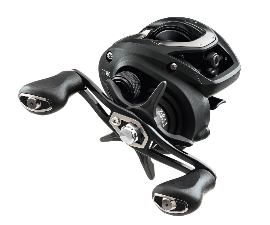 Здесь представлена небольшая линейка катушек - мультипликаторов, которые хорошо подойдут осваивающим бейткастинг рыболовам. Модели Daiwa CC80 сочетают надежность и удобство в применении. Они разработаны на основе концепции CC, т.е. часть деталей корпуса, боковые крышки сделаны из карбона. Шпуля для большей прочности изготовлена из анодированного алюминиевого сплава. Чтобы уменьшить массу деталь подверглась перфорации. В результате мультипликаторные катушки получились очень компактными и легкими. Их механизм скрывает 4 подшипника, которые обуславливают плавный ход. Предусмотрена разработчиками Дайва и система антиреверса. У осевого тормоза регулятор обладает микрошагом. Также дает возможность очень точной настройки и магнитная фрикционная система серии Magforce.