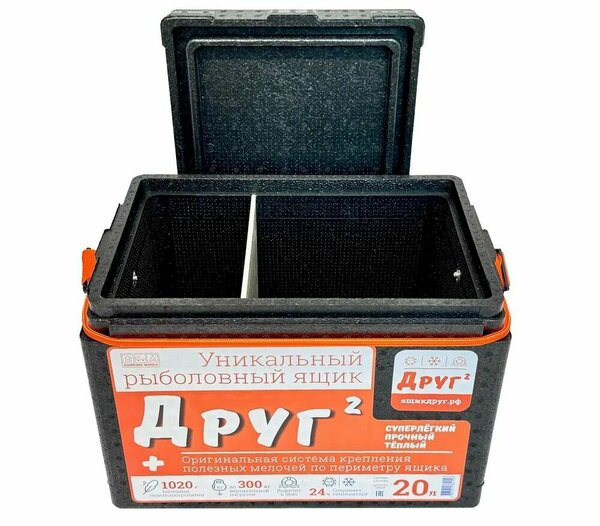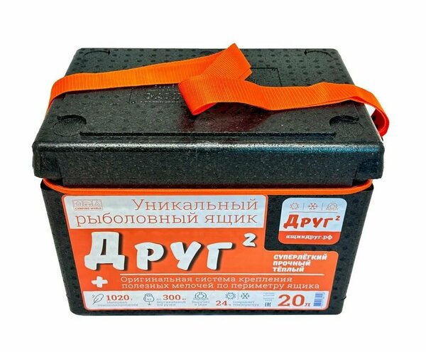 У всех ящиков появилась оригинальная система крепления. К зимнему сезону 2024-25 года, серия рыболовных ящиков-поплавков Друг 2, была дополнена полезными аксессуарами и получила новое наименование “Друг 2 +” (Друг Два Плюс). Оригинальные решения и разработка улучшений происходила в ТД “Кемпинг2000”, основанием послужила обратная связь от наших пользователей, потребности рыболовов и личный опыт использования ящика сотрудниками компании, с учётом требований к комфорту и безопасности на зимней рыбалке. 1. Оригинальная система крепления полезных мелочей по периметру ящика. Представляет из себя круглый эластичный трос в матерчатой оплетке с замком в виде крючков, фиксируется на корпусе в специальных петлях ремня и угловых нишах по крышкой. Назначение - фиксация крышки к корпусу ящика, размещение на корпусе ящика полезных рыболову вещей – полотенце, варежки, безмен, багор, шумовка, удочки и др. *(В базовой комплектации у всех моделей Друг 2+ 20 л,25 л,30 л). 2. Карман навесной универсальный. Представляет из себя навесной объемный карман с тремя отделениями. Выполненный из ПВХ ткани. Устанавливается на ящик с помощью штатного болта крепления ремня, а также двух подвесных лямок и оригинальной системы крепления ящика Друг 2+ ( см пункт 1). Назначение – размещение в прямом доступе (под рукой) рыболова самых необходимых и часто используемых снастей - удочки, черпаки, багор и др. Преимущества: