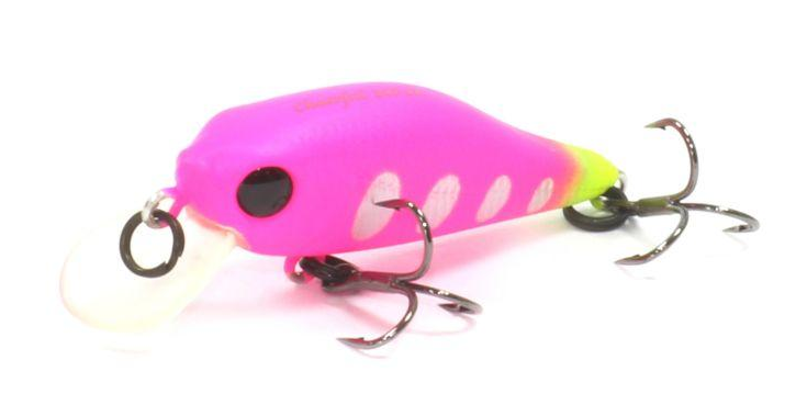 Серия приманок Cheerful от торговой марки Pontoon 21 отличается высокой уловистостью. Корпус приманки тщательно проработан для сходства с мальком, а также для интенсивной игры. Активные движения воблера непременно заинтересуют голодного хищника, который ищет легкую добычу. Игра Cheerful сохраняется при различных проводках. Модификация 34F-SR обладает положительной степенью плавучести. Длина этой приманки составляет 3,4 см., а вес – 1,45 гр. Небольшая лопатка в передней части корпуса отвечает за заглубление на 30-50 см. Воблер завлекает рыбу не только детально проработанным внешним видом, но и шумовыми эффектами. Среди множества расцветок можно подобрать как яркие окрасы, так и более реалистичные.
