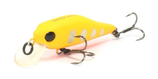 Серия приманок Cheerful от торговой марки Pontoon 21 отличается высокой уловистостью. Корпус приманки тщательно проработан для сходства с мальком, а также для интенсивной игры. Активные движения воблера непременно заинтересуют голодного хищника, который ищет легкую добычу. Игра Cheerful сохраняется при различных проводках. Модификация 34F-SR обладает положительной степенью плавучести. Длина этой приманки составляет 3,4 см., а вес – 1,45 гр. Небольшая лопатка в передней части корпуса отвечает за заглубление на 30-50 см. Воблер завлекает рыбу не только детально проработанным внешним видом, но и шумовыми эффектами. Среди множества расцветок можно подобрать как яркие окрасы, так и более реалистичные.