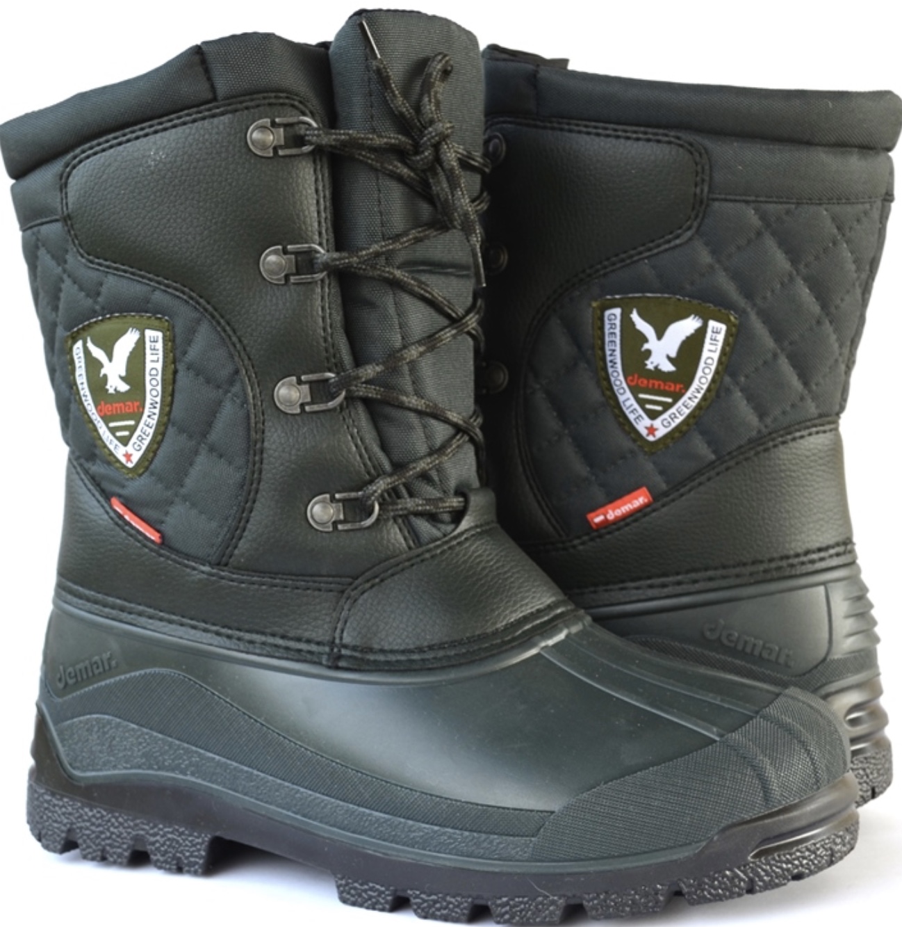 Сапоги зимние DEMAR Logan - зимние сапоги Demar Logan идеально подходят для охотникови рыбаков в холодную морозную погоду, но могут также применяться как рабочая обувь и для прогулок в зимний период времени. Хорошо защищают от холода, повреждений, водонепроницаемости, очень мягкие изнутри. Носок-утеплитель трех слойный, вынимается, что облегчает уход за обувью, изготовленный из войлока, термоизоляционной фольги и натуральной овечьей шерсти . Demar Logan - это отличный выбор для холодной зимы. Идеально подходят как для повседневного использования, так и для охоты или рыбалки даже при температуре до -50 С. Сапоги идеально фиксируются на ноге прочной шнуровкой, которая проходит через восемь металлических колец.