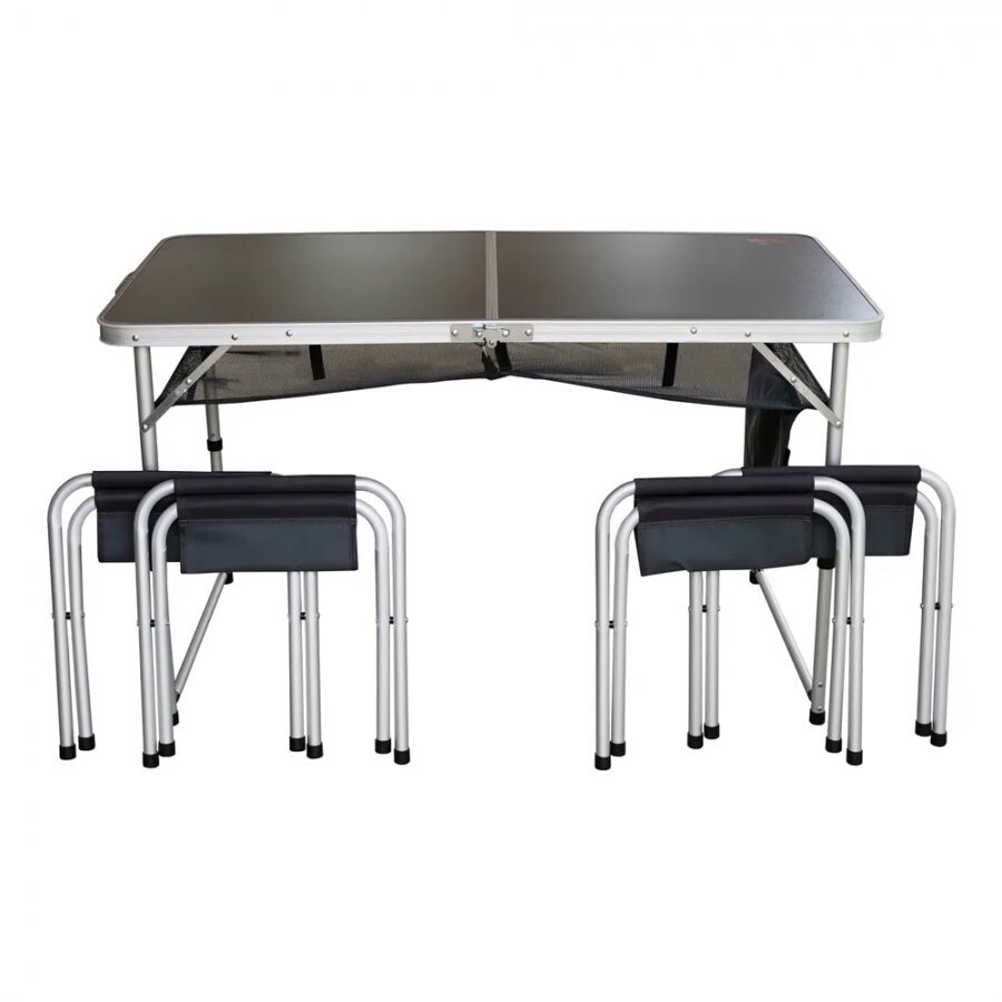 Tramp TRF-067 - комплект мебели c полкой-органайзером в чехле. В набор кемпинговой мебели входят: складной стол с подвесной полкой-органайзером и 4 табурета с сиденьями из плотного полиэстера. Стол увеличенного размера идеально подходит для комфортного застолья компании из 6 человек. Особенности: