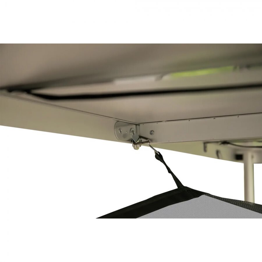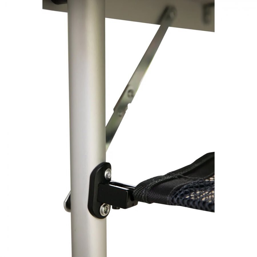 - Стол укомплектован широкой подвесной сетчатой полкой которая крепиться под столешницей;