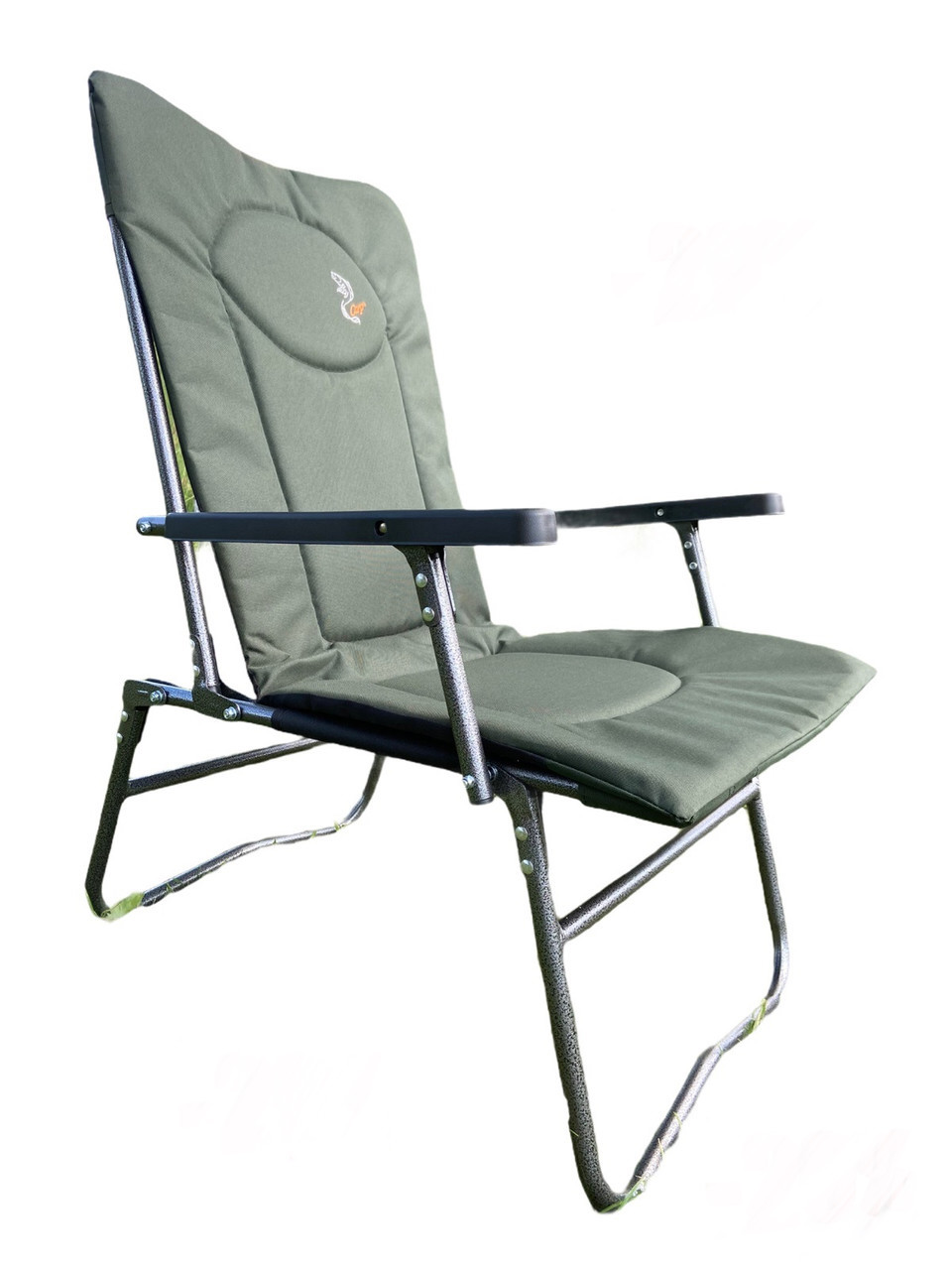 Удобное карповое кресло с подлокотниками для рыбалки и отдыха на природе. Так же преимуществами данного кресла являются высокое качество материалов, малый вес и небольшие габариты в собранном виде.