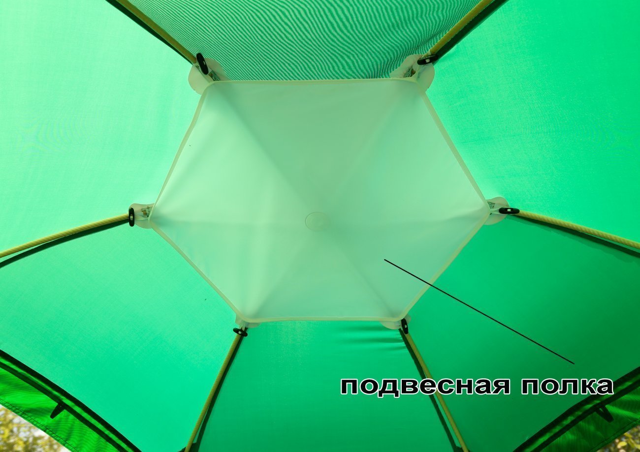 Под куполом палатки крепится шестигранная подвесная полка для размещения в ней крупных предметов.