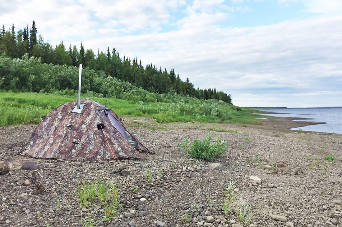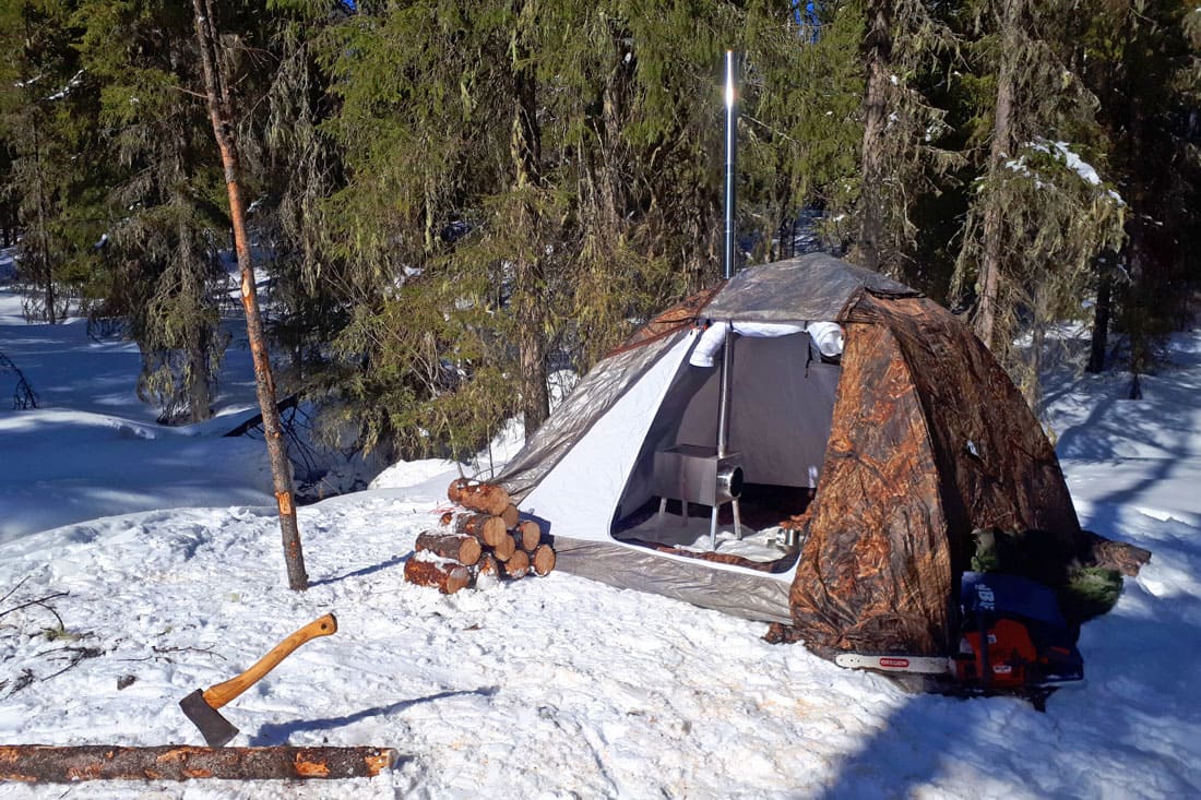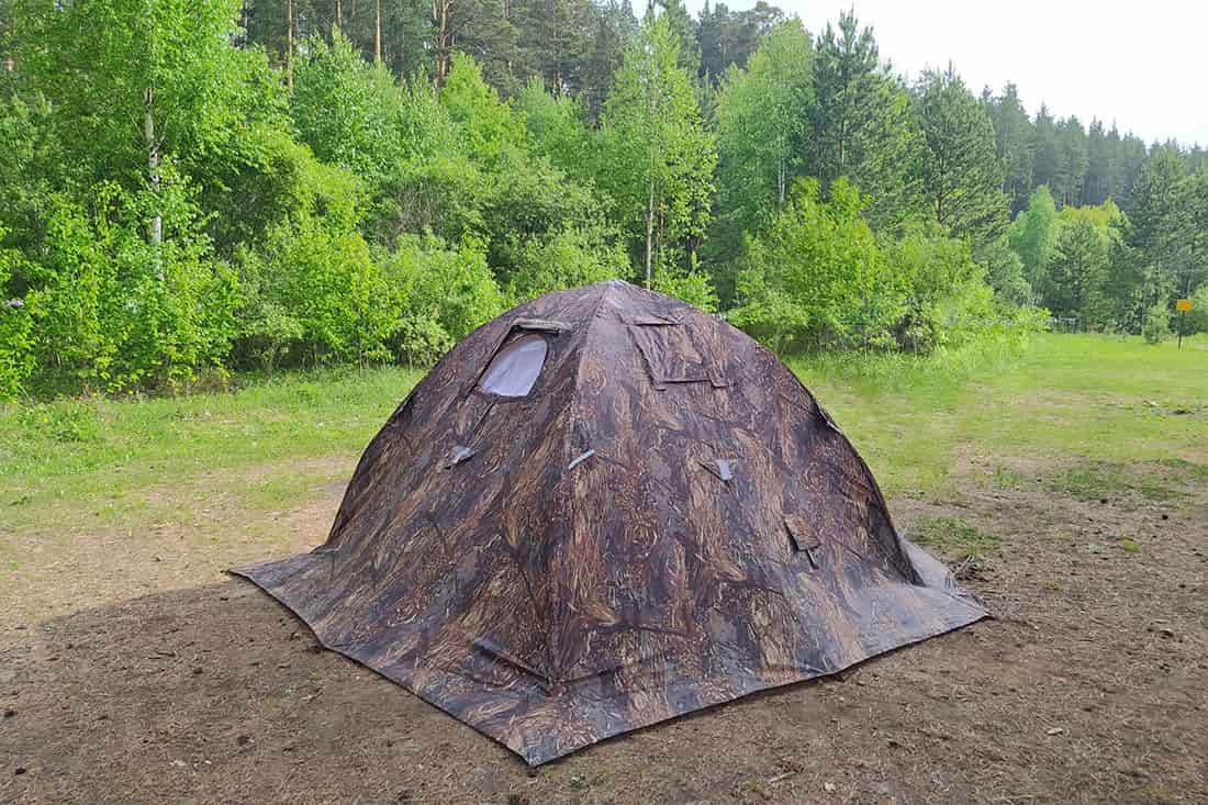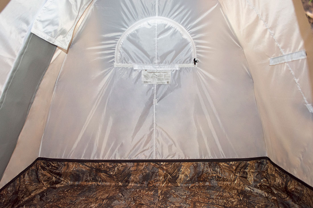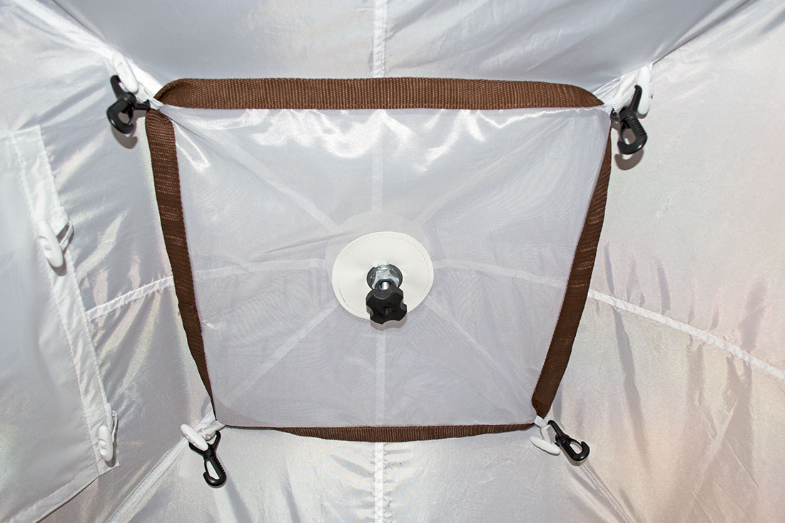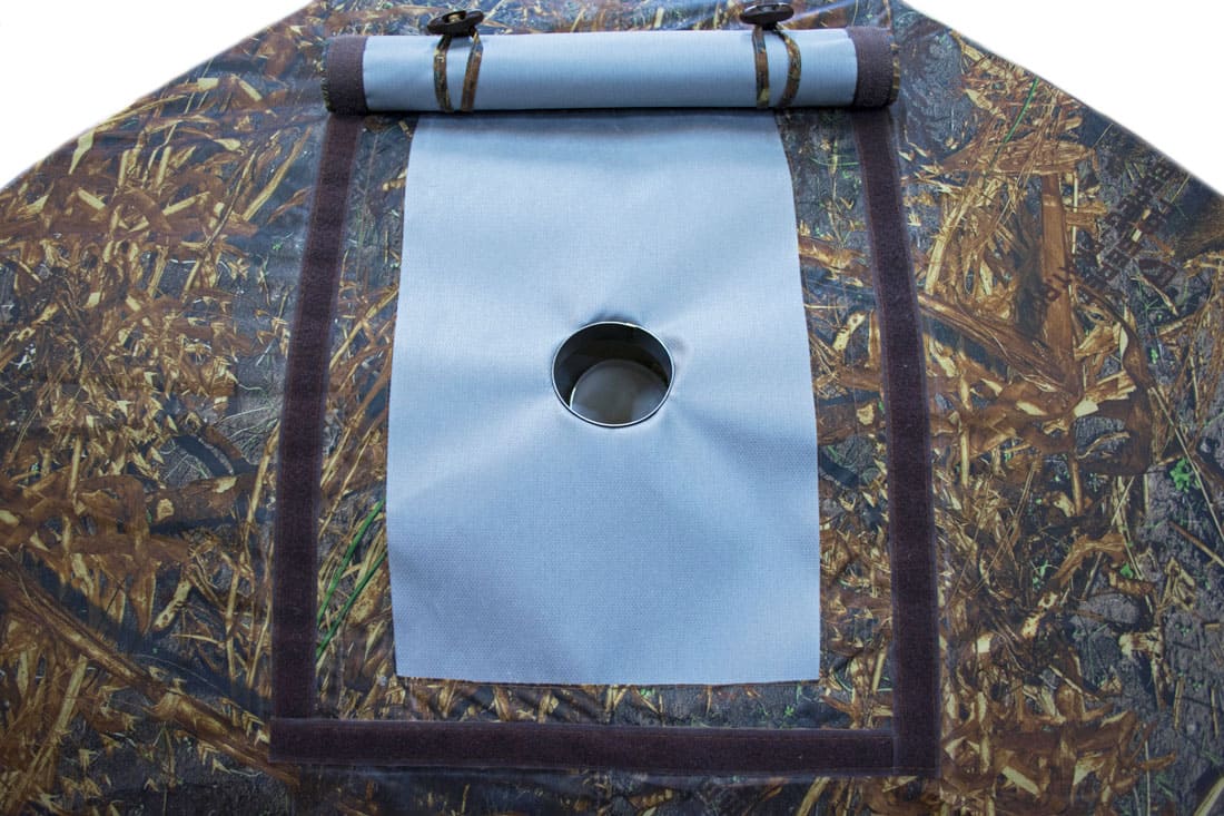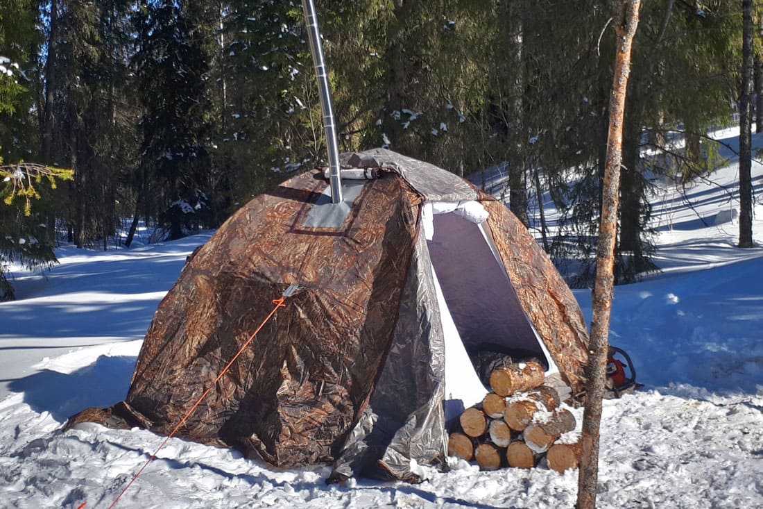 В ее оснащение входит многослойное окно со вставкой из прозрачной морозостойкой силиконовой пленки, разделка дымохода, вход на молнии, москитные сетки на входе и окнах, съемное дно на молнии.