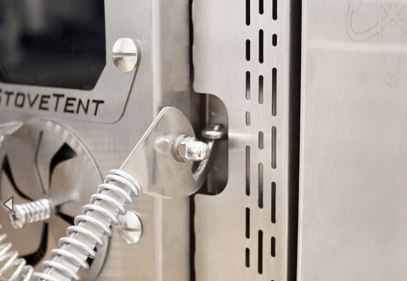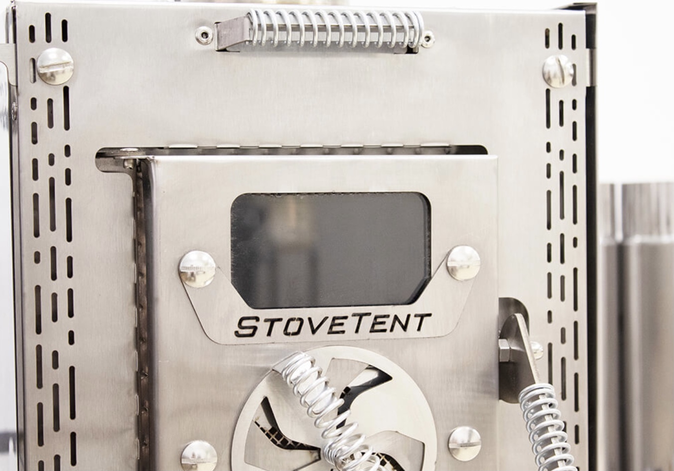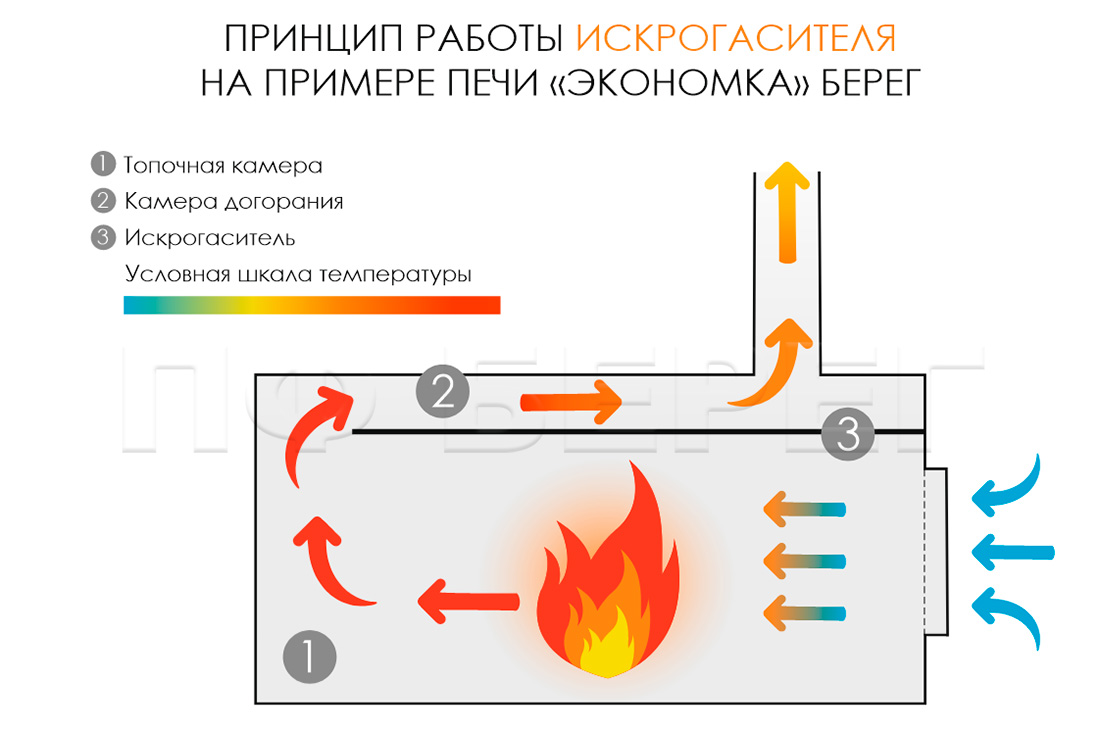 Искрогаситель. Корпус печи имеет две камеры сгорания, разделенные искрогасителем. Эффективность печи увеличивается, а палатка защищена от вылетающих искр.