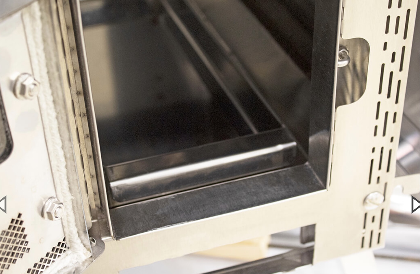 100% герметичность. Топочная дверка закрывается на замок, ее периметр обработан жаростойким уплотнителем. Он не пропускает дым и воздух. Интенсивность горения меняется при помощи направления вращения диска и степени открытия воздухозаборника. Внутренняя сторона обшита металлической сеткой для предотвращения вылетания углей из топки.