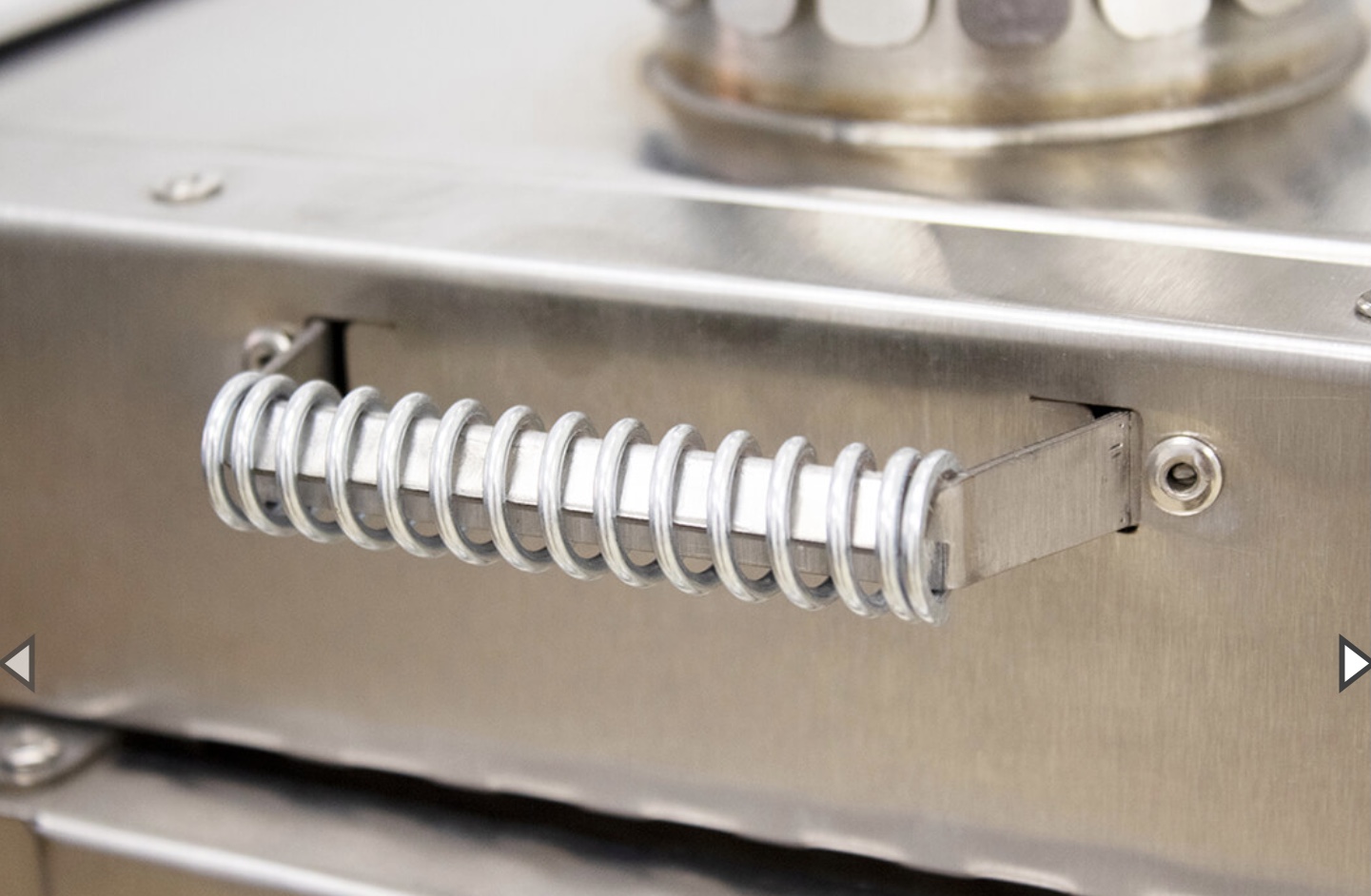 Ручки с пружинами. Если перчаток нет под рукой, вы можете безопасно открыть работающую печь. Ручки дверцы изготовлены из металлической пружины, которая не перегревается.