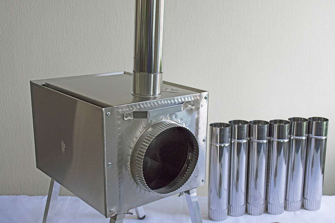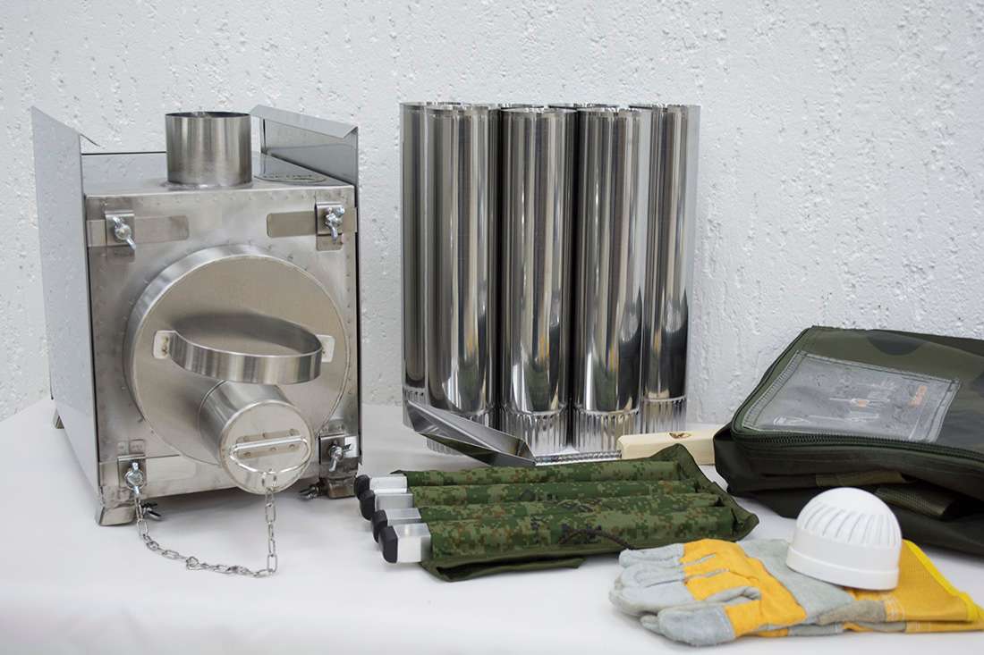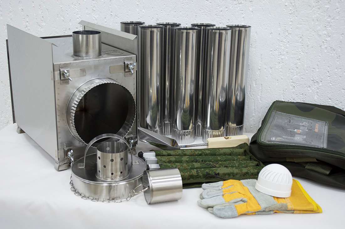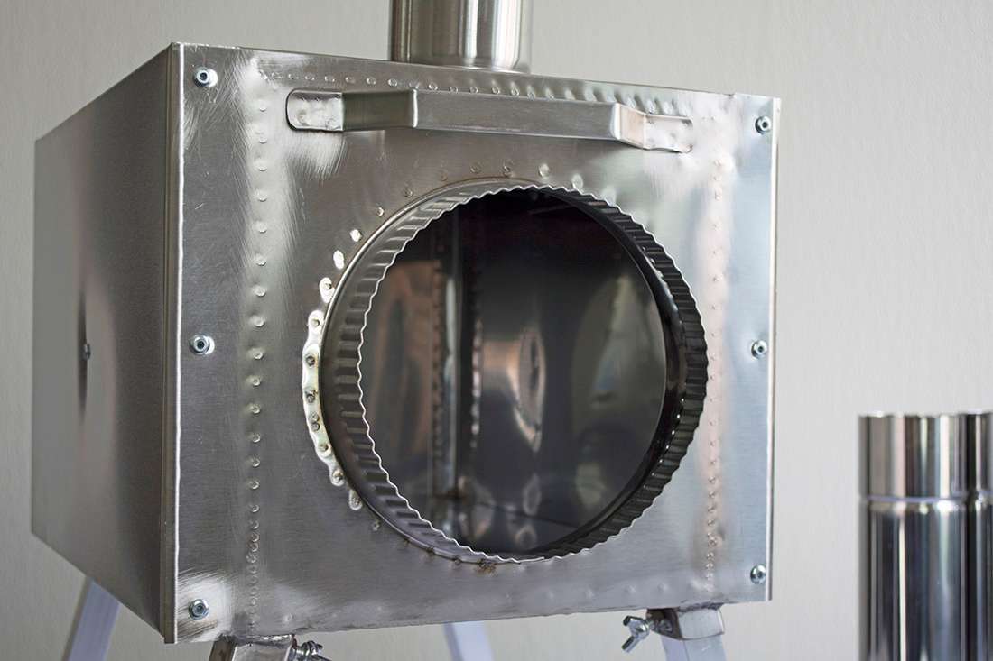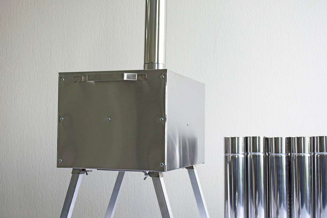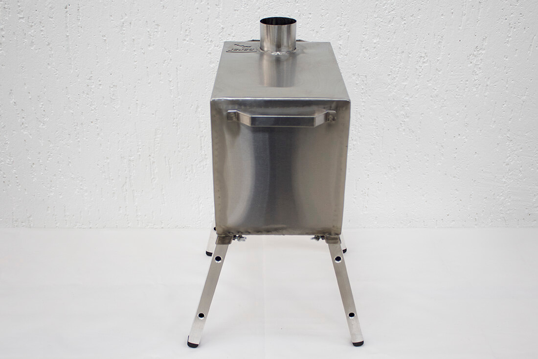 Съемные ножки на барашковых винтах придают походной печке достаточную высоту и устойчивость, обеспечивая необходимую пожарную безопасность при использовании в палатке, а также упрощают транспортировку.