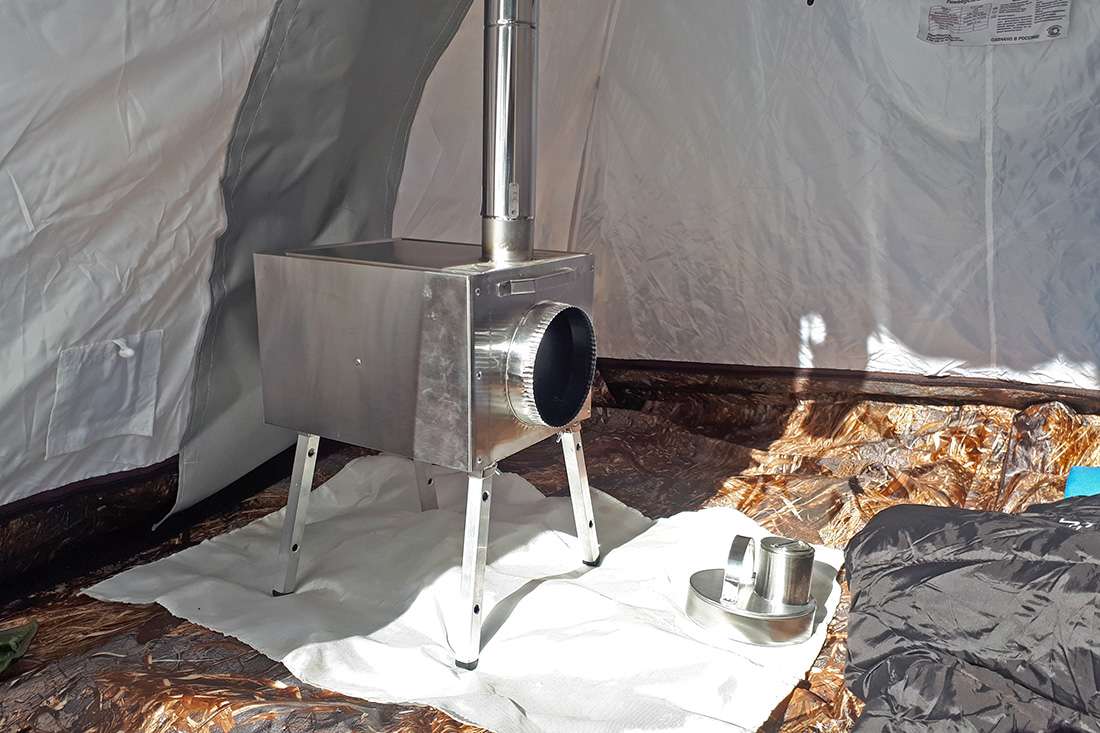 Экран нижней стенки в печах Экономка предотвращает таяние льда под зимней палаткой.