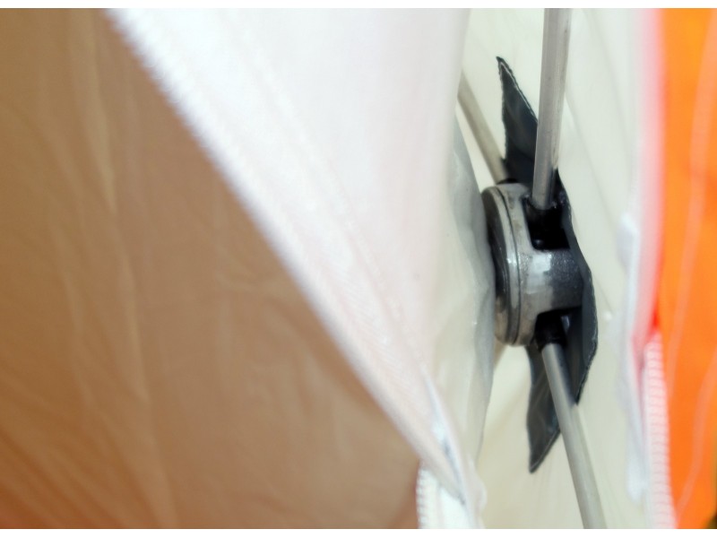 5.При креплении укрытия на льду распределять растяжки симметрично по всему периметру, что поможет избежать перекоса и чрезмерной нагрузки на молнию входной двери.