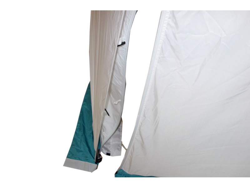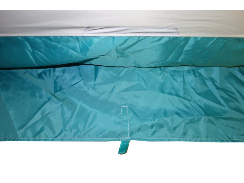 5. При креплении укрытия на льду распределять растяжки симметрично по всему периметру, что поможет избежать перекоса и чрезмерной нагрузки на молнию входной двери.