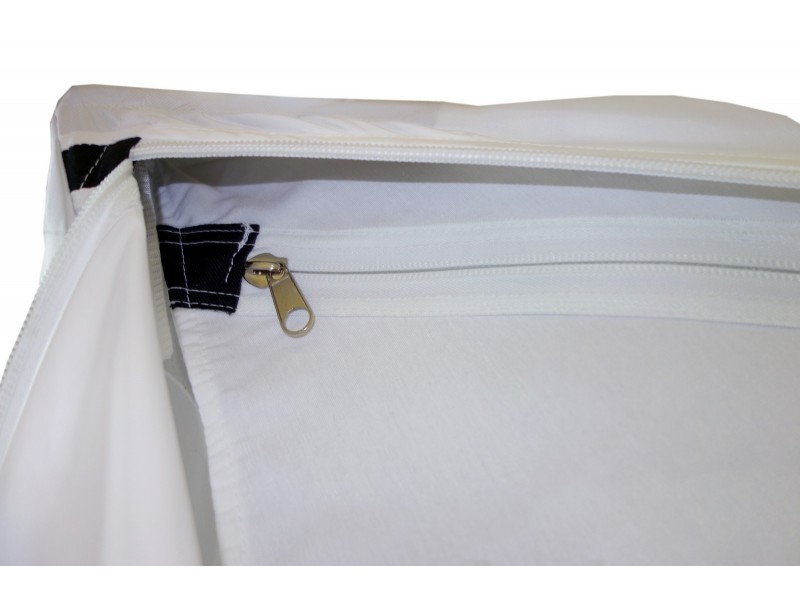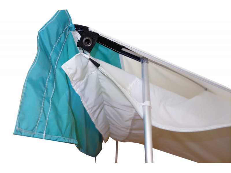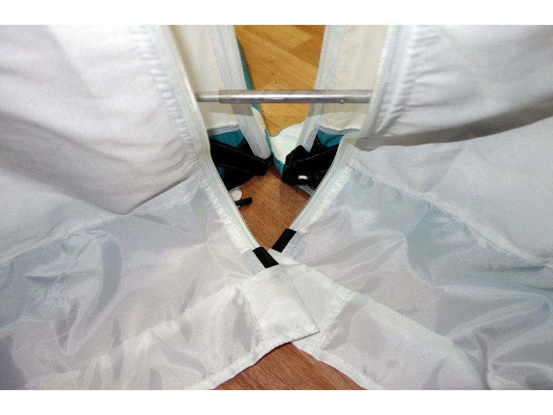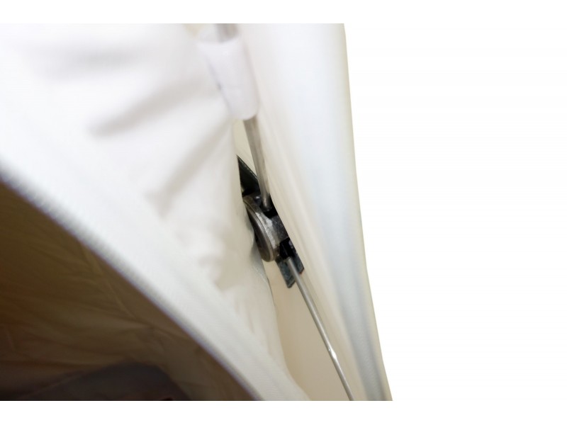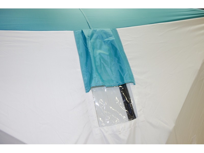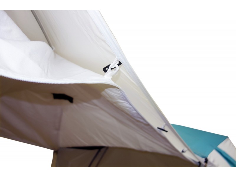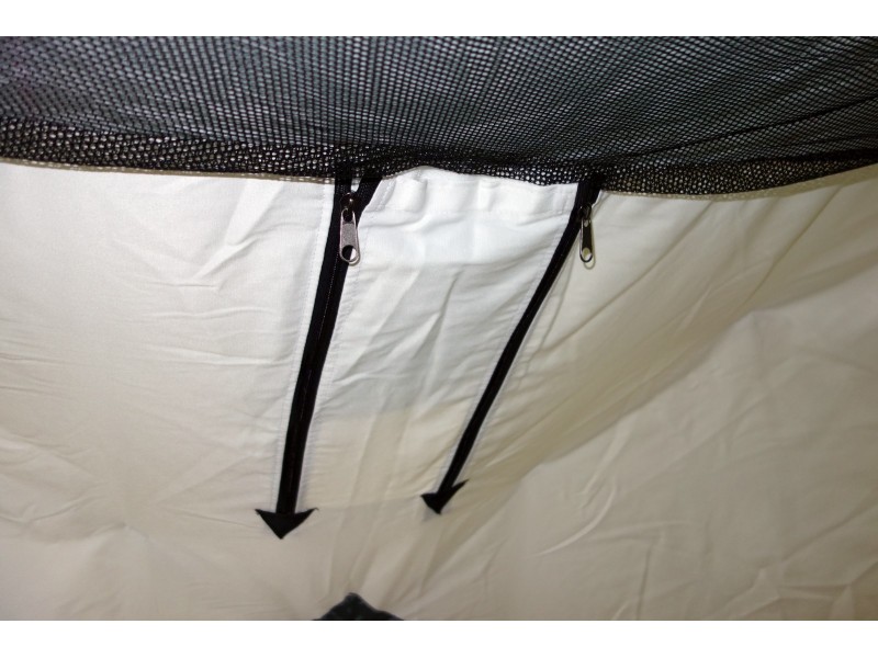 4. Открыть одну сторону, расстегнув молнии. Установить стойки.