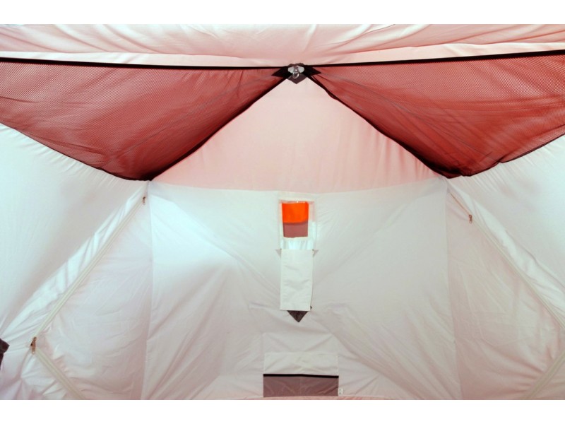 Всесезонная палатка Призма Шелтерс Премиум (2-сл.) имеет форму куба, что позволяет рыбакам рационально использовать пространство. Сверлить лунки теперь можно прямо в установленной палатке. Габариты ПРИЗМЫ позволяют делать это без каких-либо неудобств. В отличие от классических палаток ПИНГВИН™, палатка ПРИЗМА более ветроустойчива. Благодаря своей конструкции палатка выдерживает порывистый ветер. Легко ставится одним человеком в любую погоду. Тент выполнен из ткани Оксфорд 240, которая выдерживает столб воды не менее 2000 мл. Также Шелтерс можно использовать как зимой, так и летом. За 30 секунд, путем открытия двух молний, одна сторона палатки поднимается и становится крышей. Палатка превращается в укрытие для летней рыбалки ШЕЛТЕРС. Установив палатку на берегу водоема, вы находитесь в укрытии и в то же время имеете открытый доступ к воде и абсолютно свободно работаете со снастями. В то же время вещи, прикормка, насадка, снасти - всё находится рядом в укрытии. ПРИЗМА ШЕЛТЕРС прошла тестовые испытания на водоемах Урала и вызвала огромный интерес и популярность! Призма Шелтерс Премиум (2-сл.) имеет увеличенные размеры. Теперь в ней могут свободно разместиться четыре человека и комфортно рыбачить как днем, так и ночью! Для удобства сделано два входа. Входы сделаны не по диагонали, как принято на всех импортных аналогах, а напротив друг друга, что позволило оптимизировать внутреннее пространство, открывающая сторона находится напротив дверей. Входы выполнены в угловом варианте и снабжены застежкой – липучкой. Так же входы снабжены специальной зимней молнией, которая снаружи имеет защитную планку, предотвращающую от замерзания. Палатка выполнена в светлых тонах и имеет яркую крышу и пороги, а так же светоотражающие элементы по периметру, что позволяет увидеть палатку в ночное время. На наружной юбке имеются оттяжки для крепления порогов при отсутствии снега. На наружной юбке имеются оттяжки для крепления порогов при отсутствии снега. Внутренне пространство тоже стало намного удобнее. Сверху в тенте установлены 2 кармана-сетки для легких вещей, в дополнение к четырем сдвоенным карманам по периметру, 2 форточки, выполненных с применением прозрачной морозостойкой ПВХ-пленки (полностью съёмные). В наружном тенте имеется форточка, изготовленная с применением морозостойкой прозрачной ПВХ-пленки на контактной ленте (полностью съёмные). Внутренний тент полностью изготавливается из смесовой дышащей ткани СТ-1, что позволяет отводить из палатки излишнюю влагу и конденсат. Во внутреннем тенте имеется форточка на молнии и контактной ленте, три сдвоенных кармана с сеткой в нижней части тента и 2 потолочных кармана-сетки. Внутренний тент прикрепляется с помощью вязок и клевант к наружному тенту, таким образом, между тентами образуется воздушная прослойка, что является самым лучшим теплосберегающим элементом. Внутренний тент, в отличие от импортных аналогов, имеет белый цвет, что гораздо приятнее и практичнее, и в пасмурную погоду и ночью в палатке светло и комфортно, и требуется во много меньше освещения для ночной ловли. Удобный фирменный чехол позволяет свободно уложить после рыбалки даже обмерзшее укрытие! Обратите внимание, что укрытие не обладает дышащими свойствами. Для циркуляции воздуха внутри палатки рекомендуем использовать ф