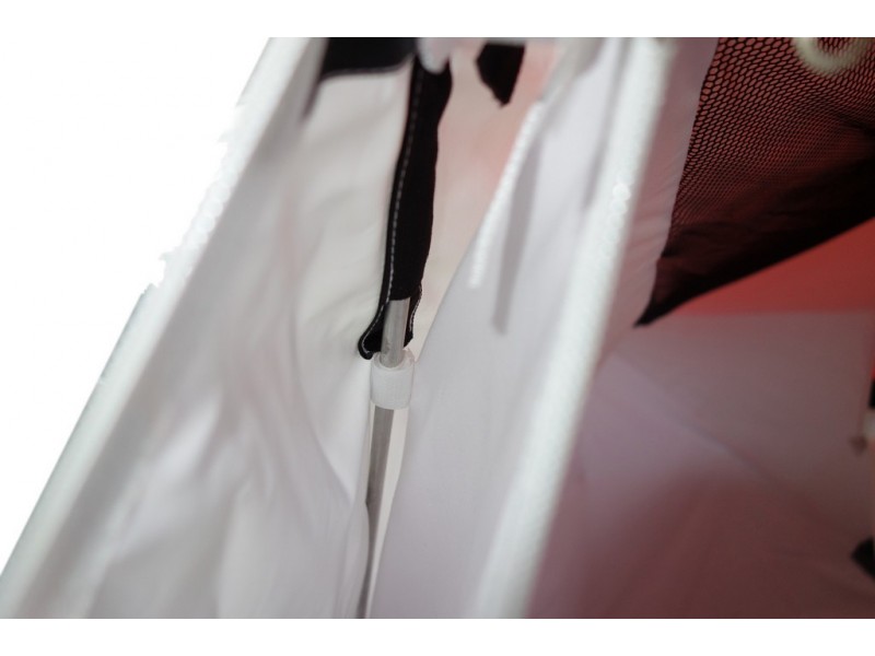 4. Открыть одну сторону, расстегнув молнии. Установить стойки.