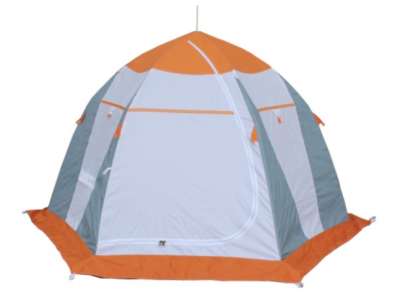 Если вы хотите комфортно рыбачить в мороз и непогоду, советуем купить палатку Нельма-3 от Митек. Наша красавица с оранжевым куполом, устойчивым каркасом и продуманными деталями подходит для зимней рыбалки лучше других палаток линейки Нельма.