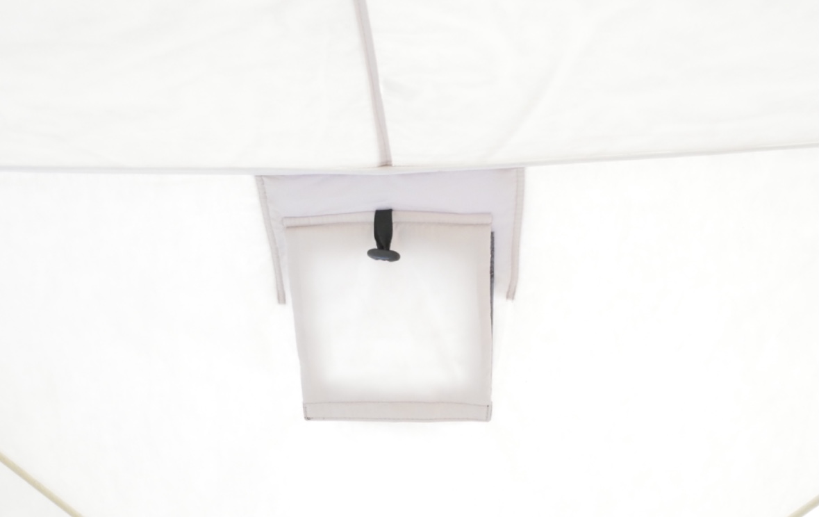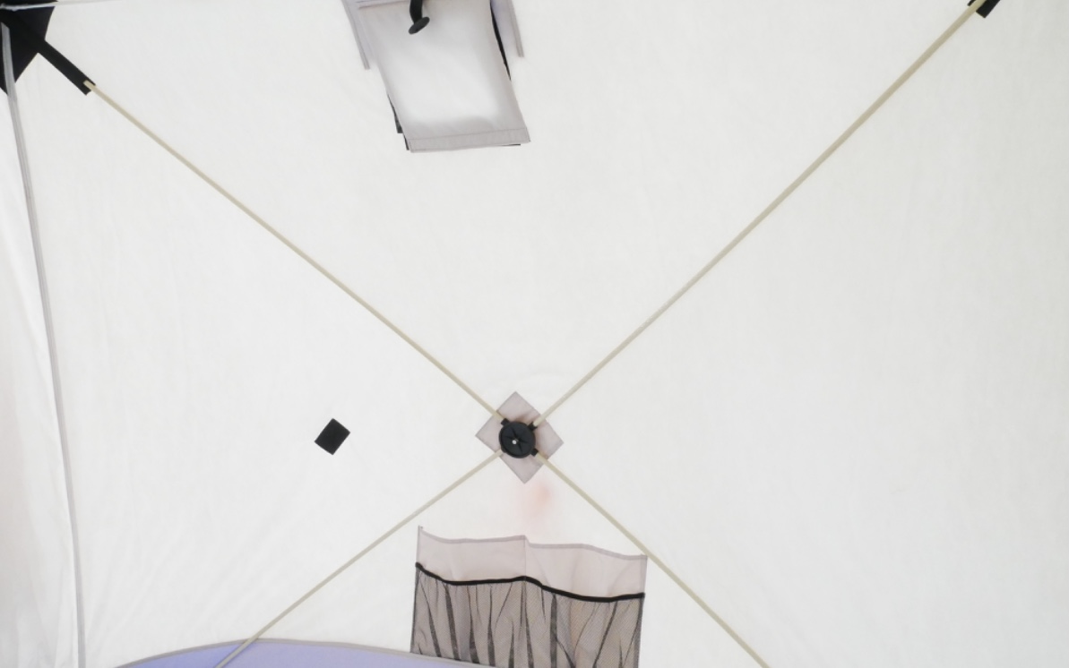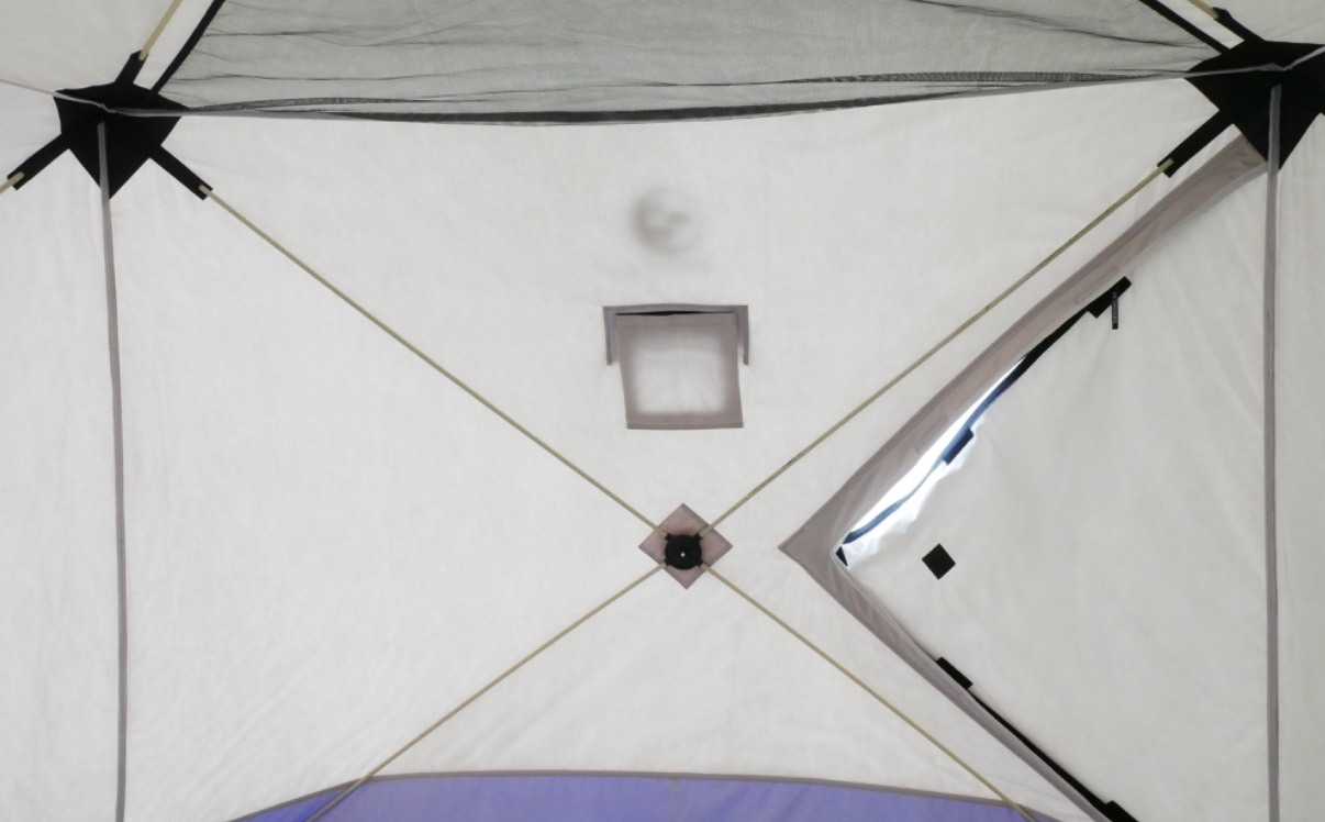 Палатка оснащена 1 входом с двухсторонним утеплением молнии и двумя двойными бегунками с пуллерами и оснащена системой проветривания.